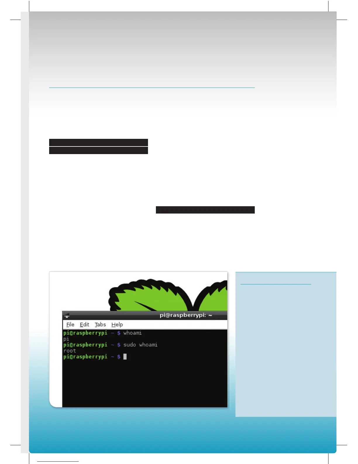 Use the sudo command to switch between the normal user ‘pi’, and the superuser ‘root’.