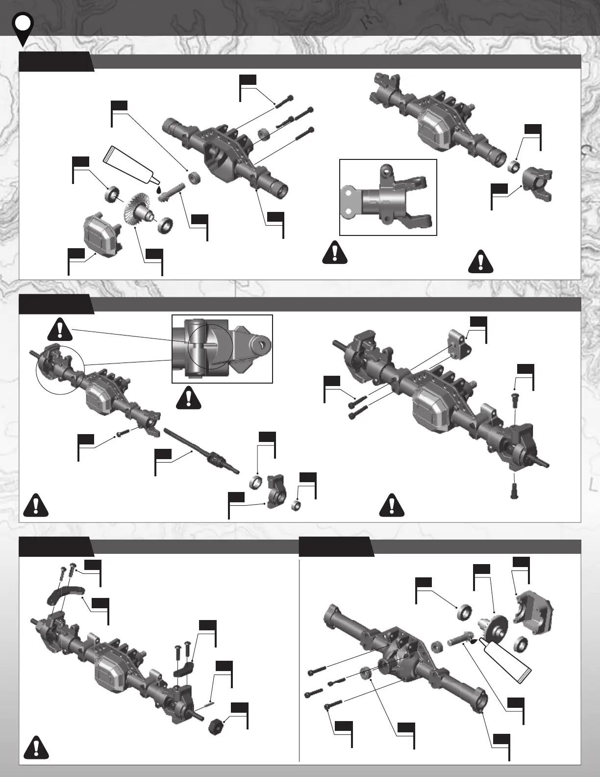 Element RC Enduro Ecto - Front Axle Assembly: Gate 01 (Bag 5); Front Axle Assembly: Gate 02 (Bag 5); Front Axle Assembly: Gate 03 (Bag 5); Rear Axle Assembly: Gate 01 (Bag 6)
