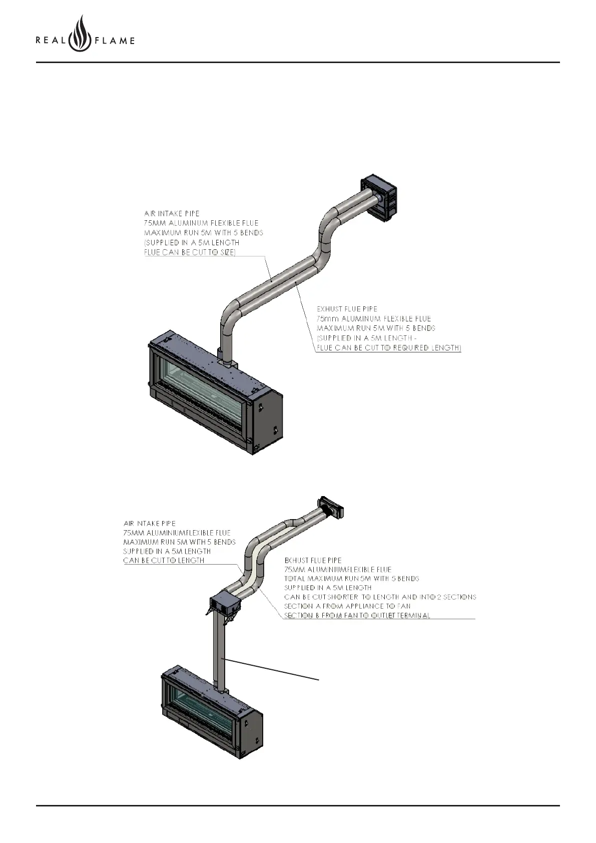 Flue runs 0m to 5m length (excluding 0-5m rooftop termination)