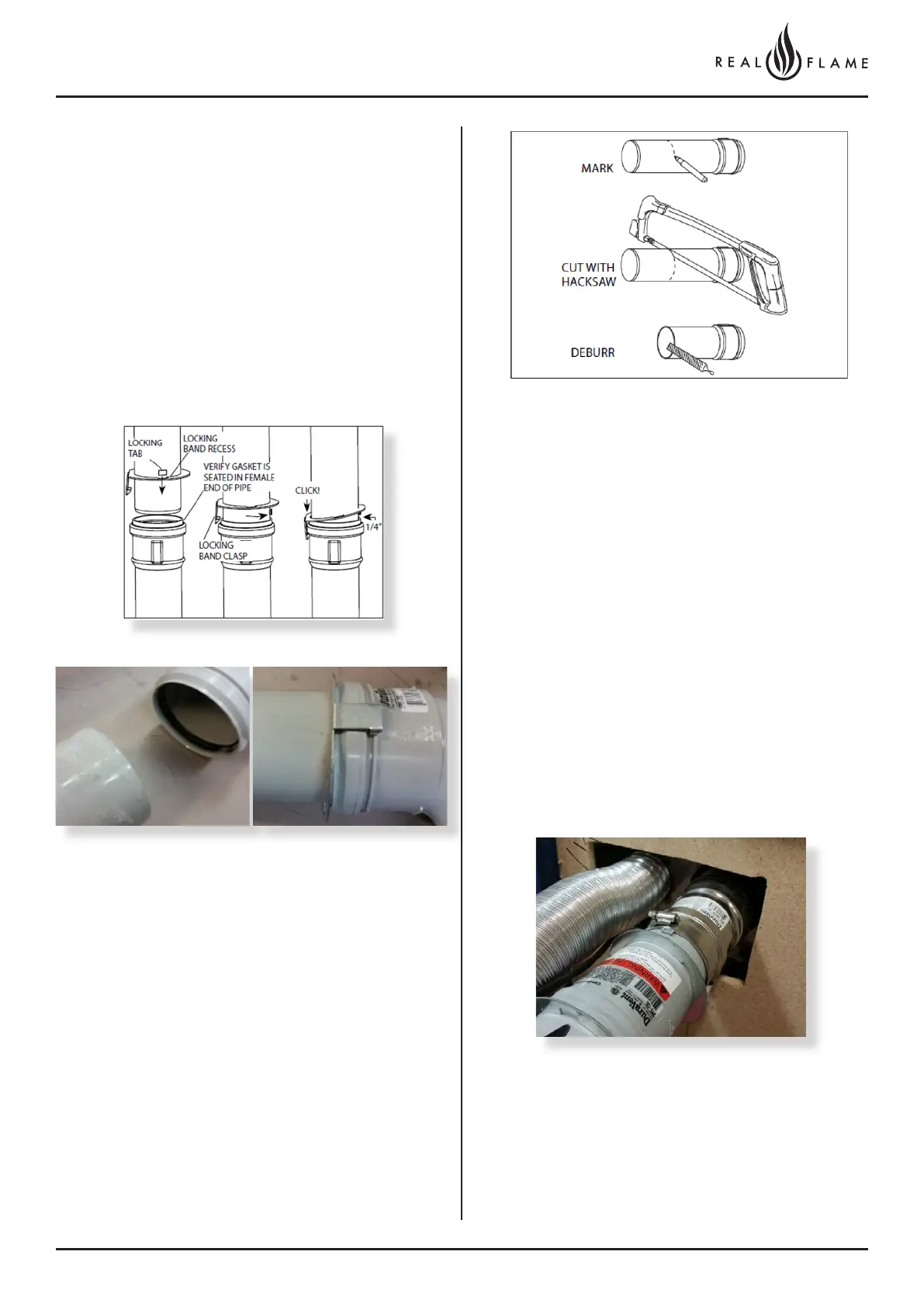 Clip catch into place to prevent flue pipes from separating.