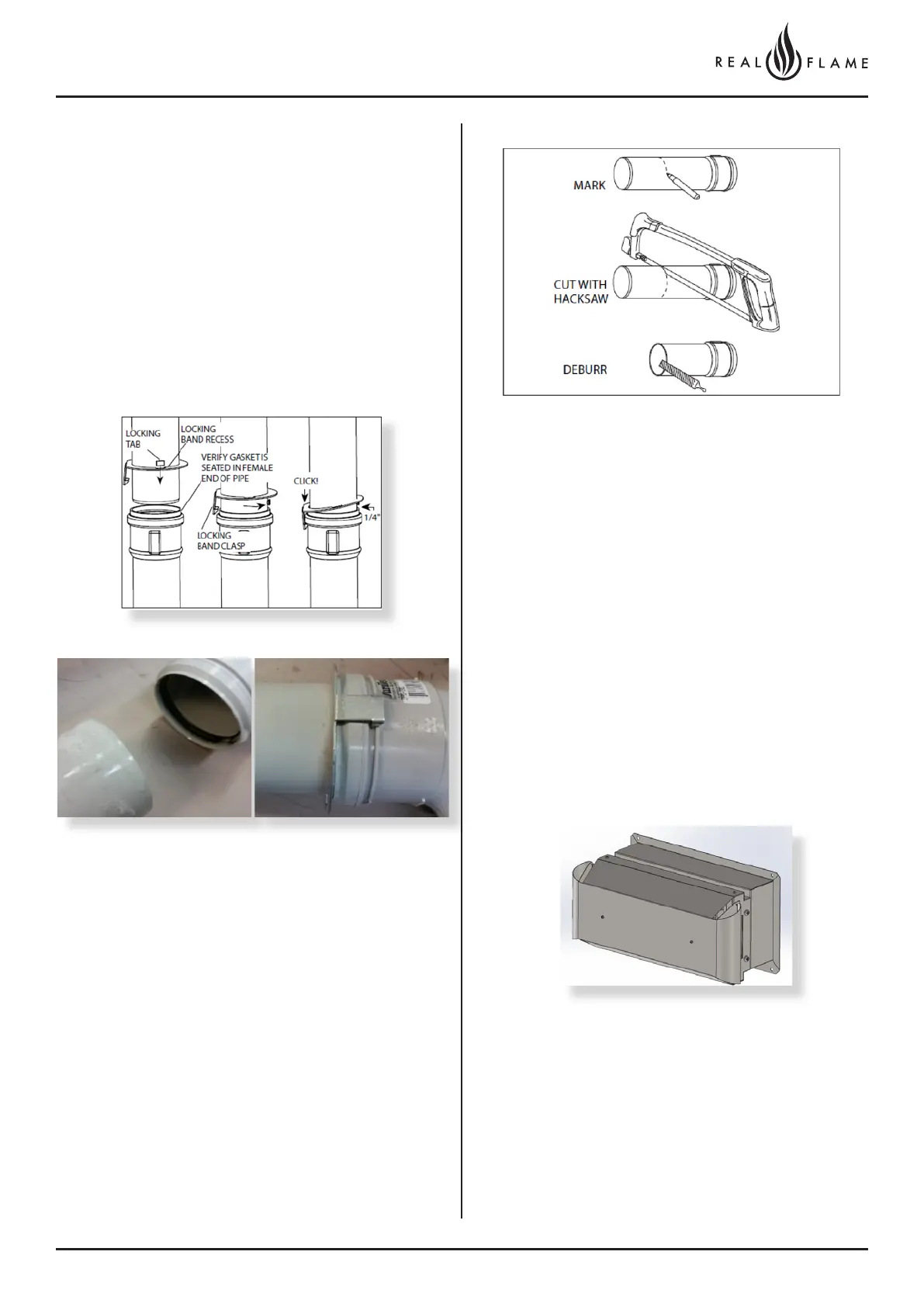 Clip catch into place to prevent flue pipes from separating.