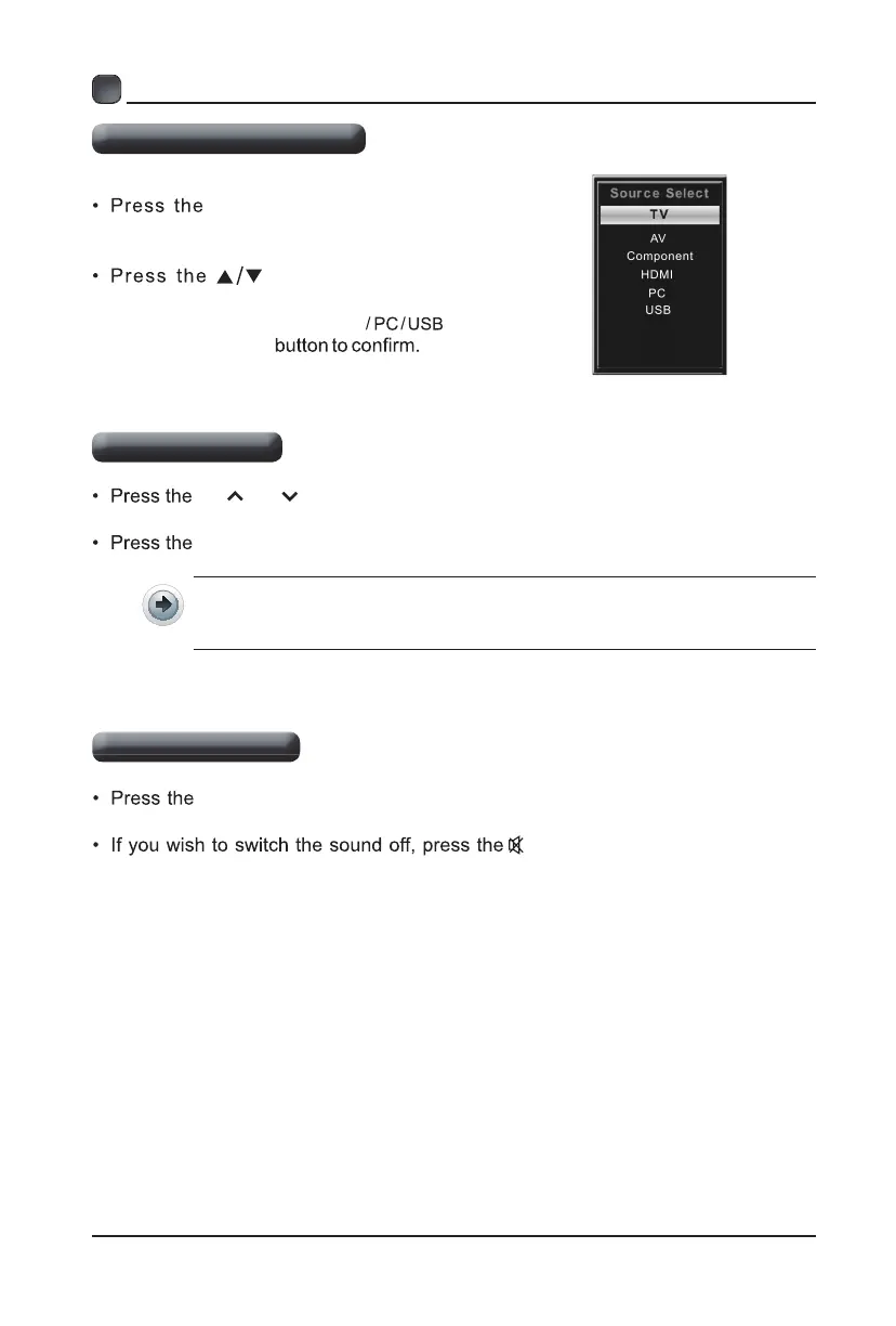 VOL+/- buttons on the main unit or on the remote control to adjust the