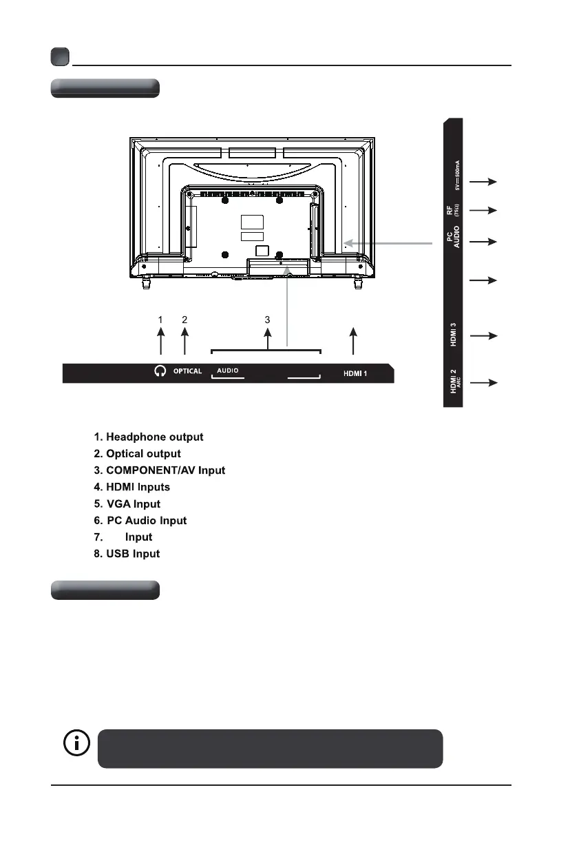 The TV is provided with mounting holes for a VESA approved wall mounting bracket (Not