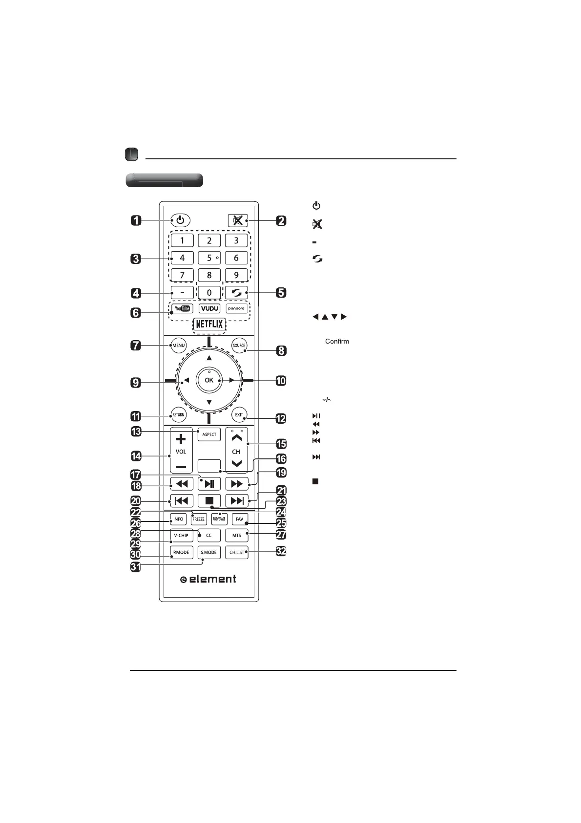 1. :Switch the TV between On and Standby