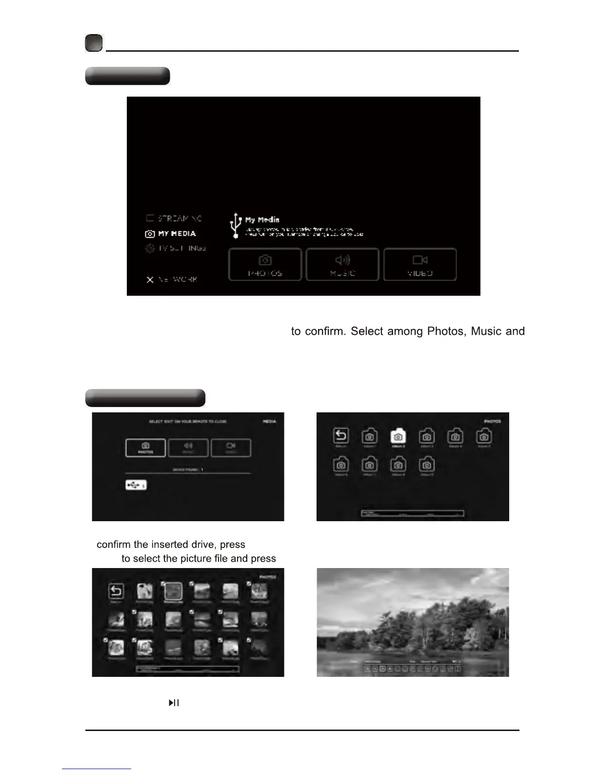 Note: Portable drives should be inserted before entering MY MEDIA menu.