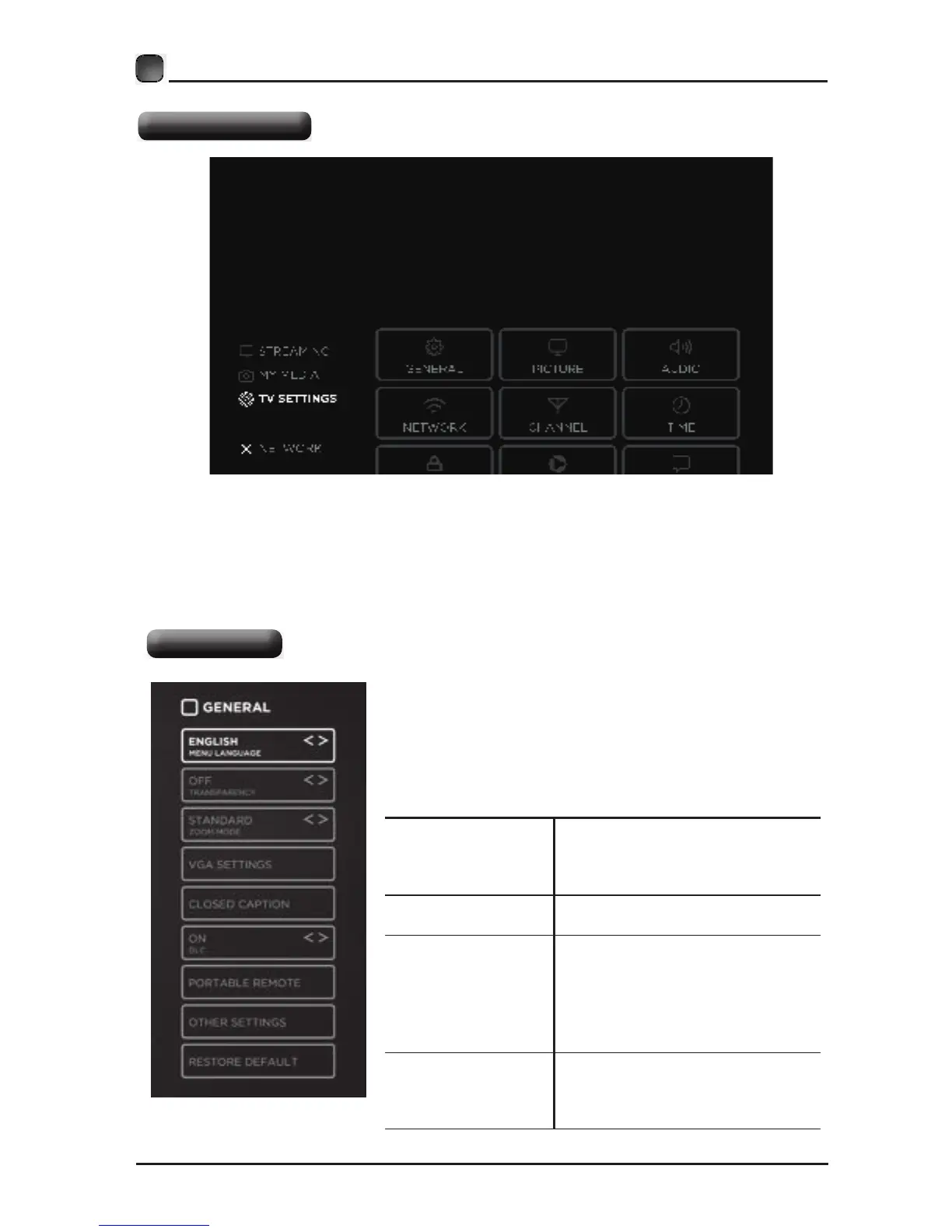 main interface. Then use the Arrow buttons to highlight TV Settings and press