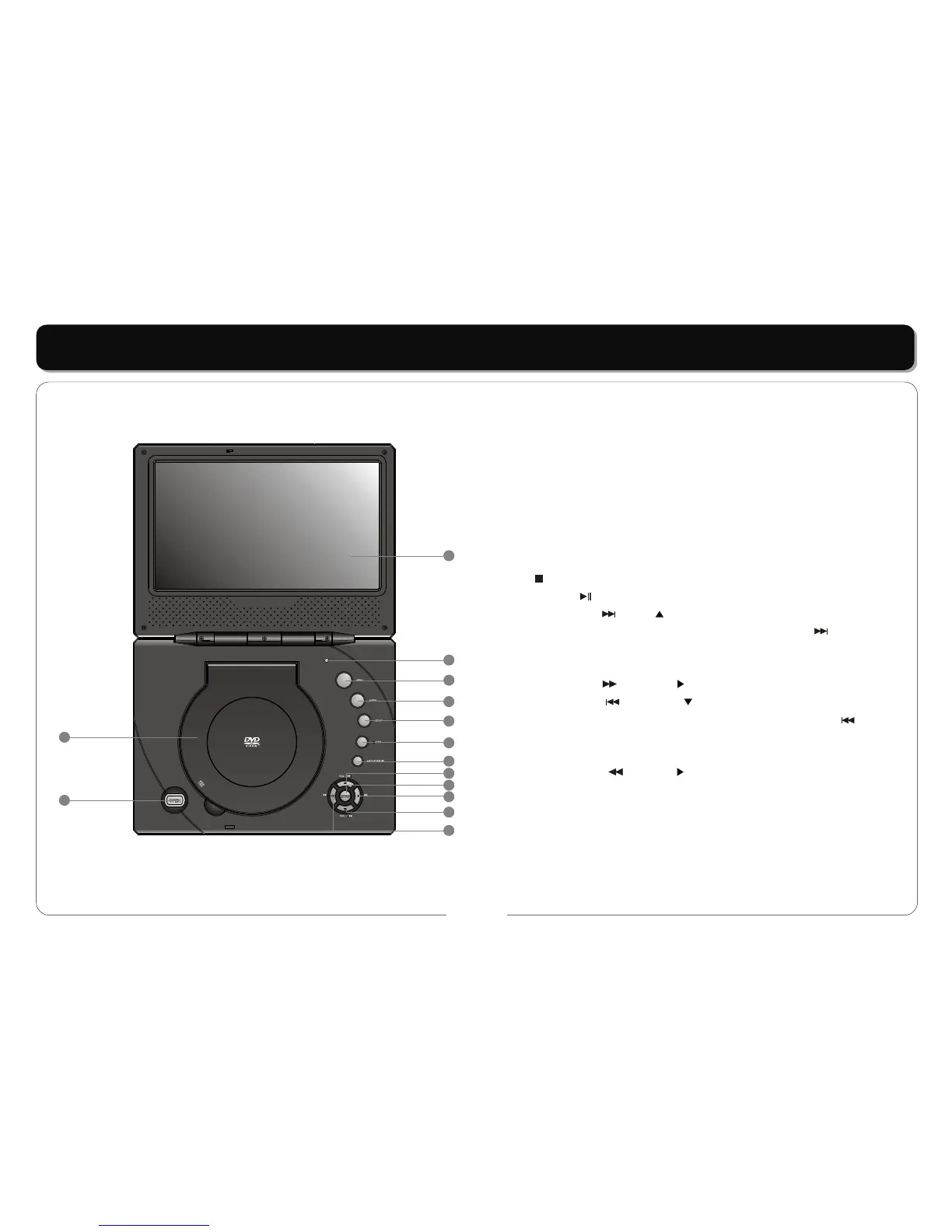 11. VOLUME- / LAST ( ) / DOWN ( ) key: It's VOL- when pressing for a