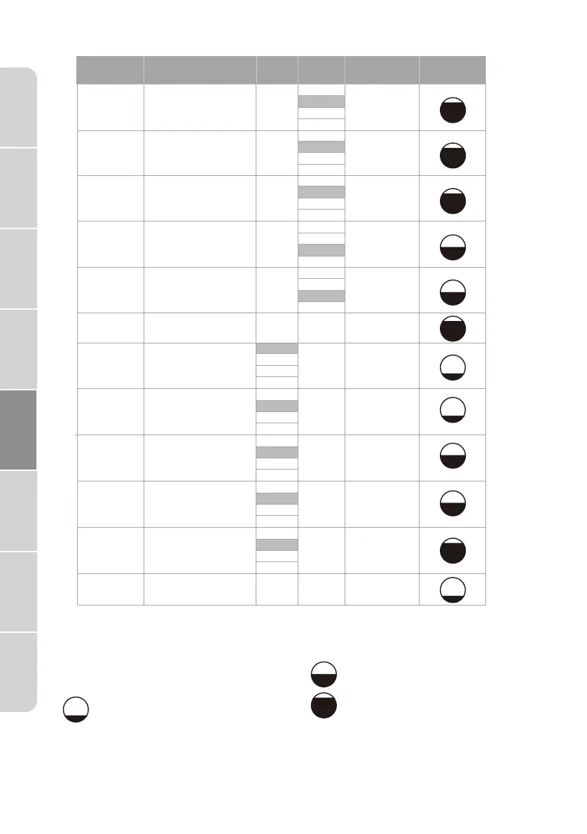 * Table in grey is an initial setting. “Y” are all optional functions you can select.