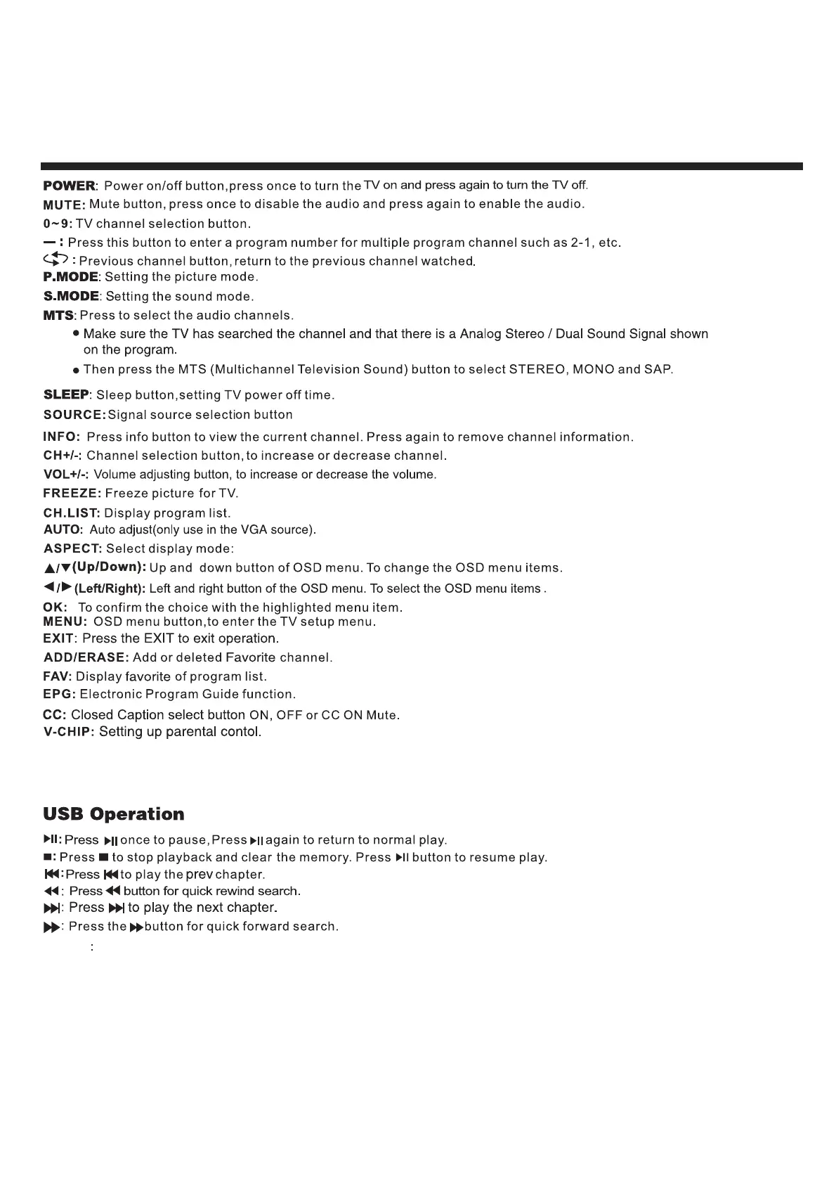 Remote Control Key Functions