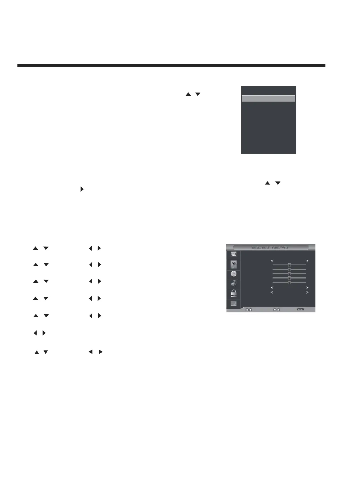 Press the MENU at the side of the panel or MENU on the remote control and then use to move the