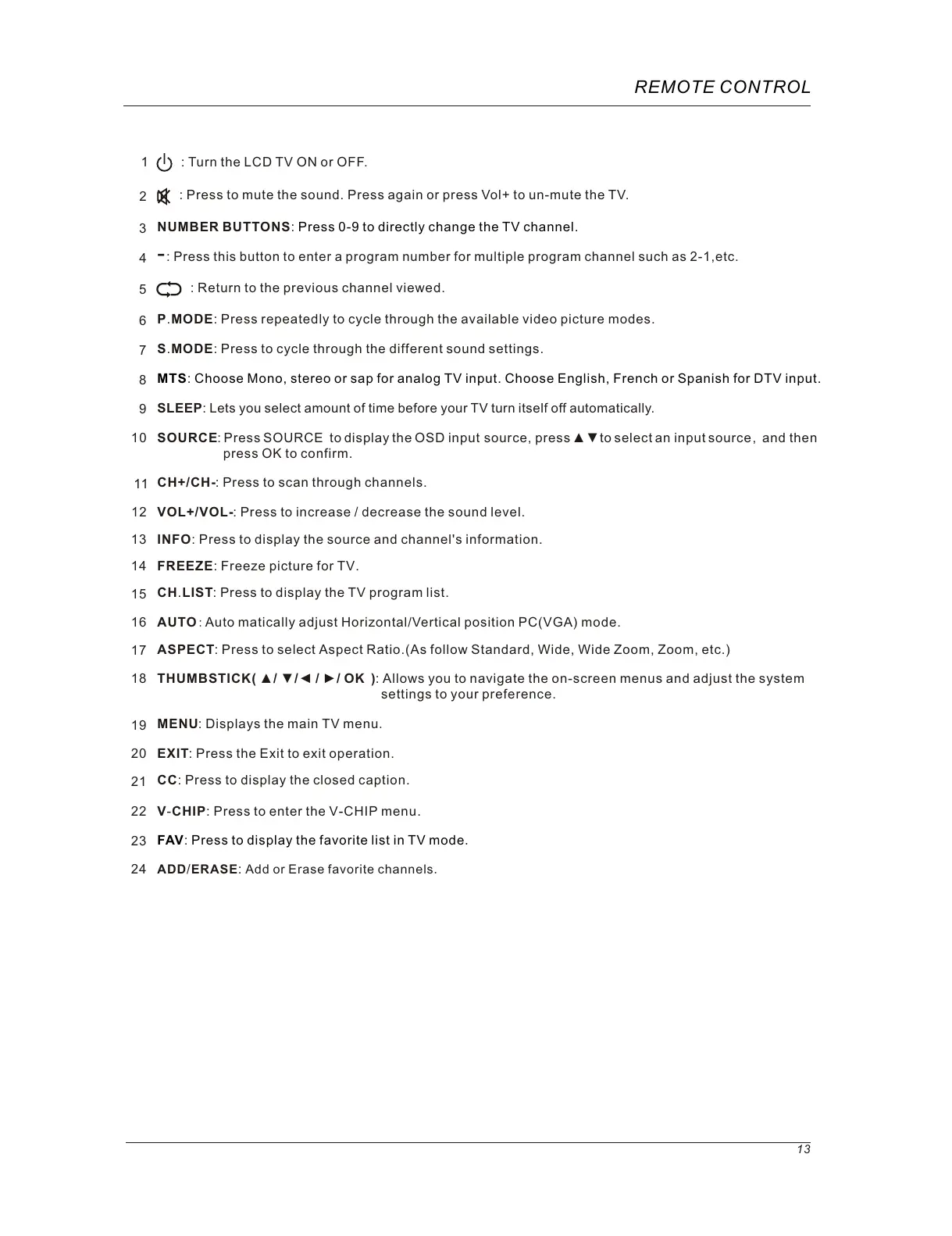 : Turn the LCD TV ON or OFF.