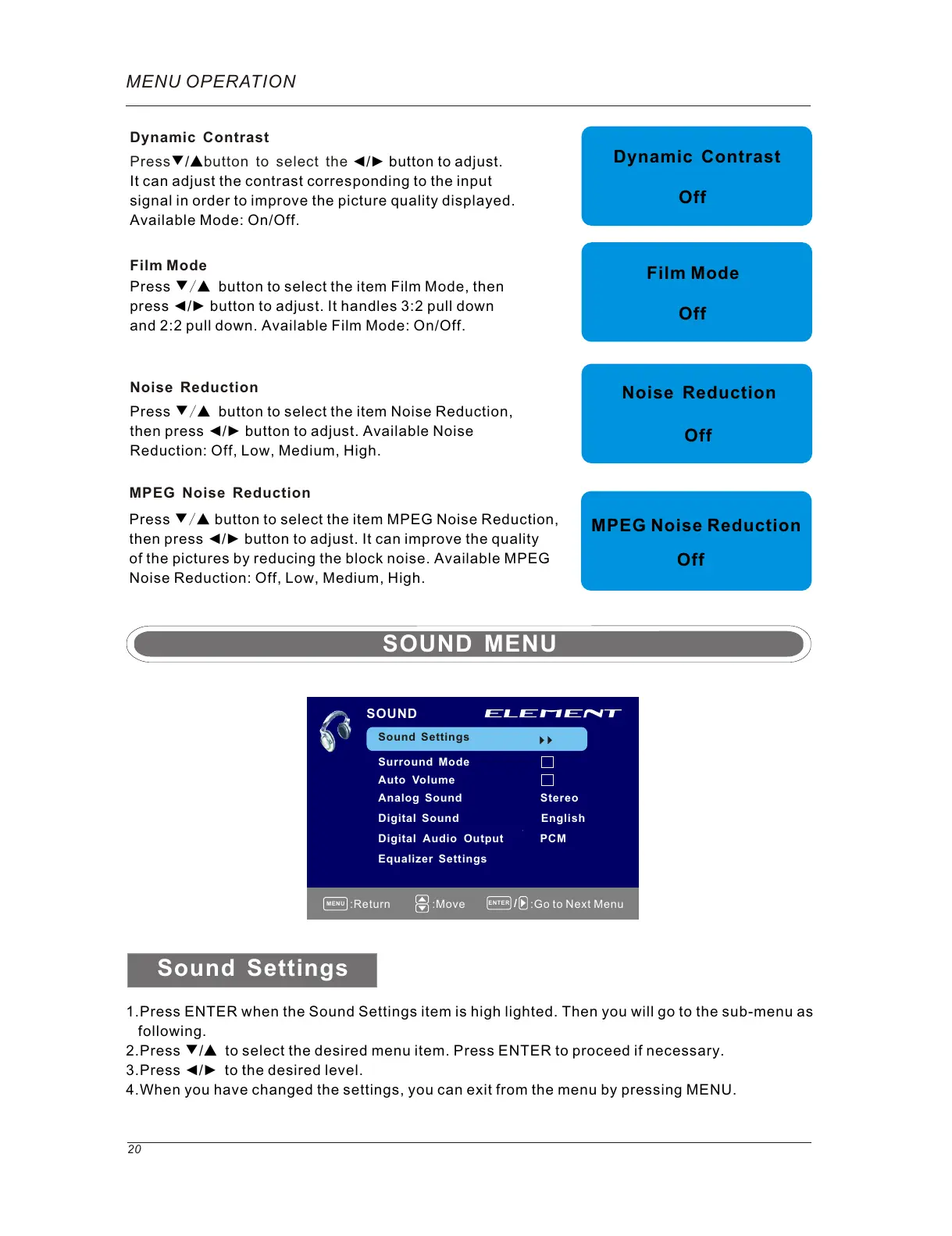 1.Press ENTER when the Sound Settings item is high lighted. Then you will go to the sub-menu as
