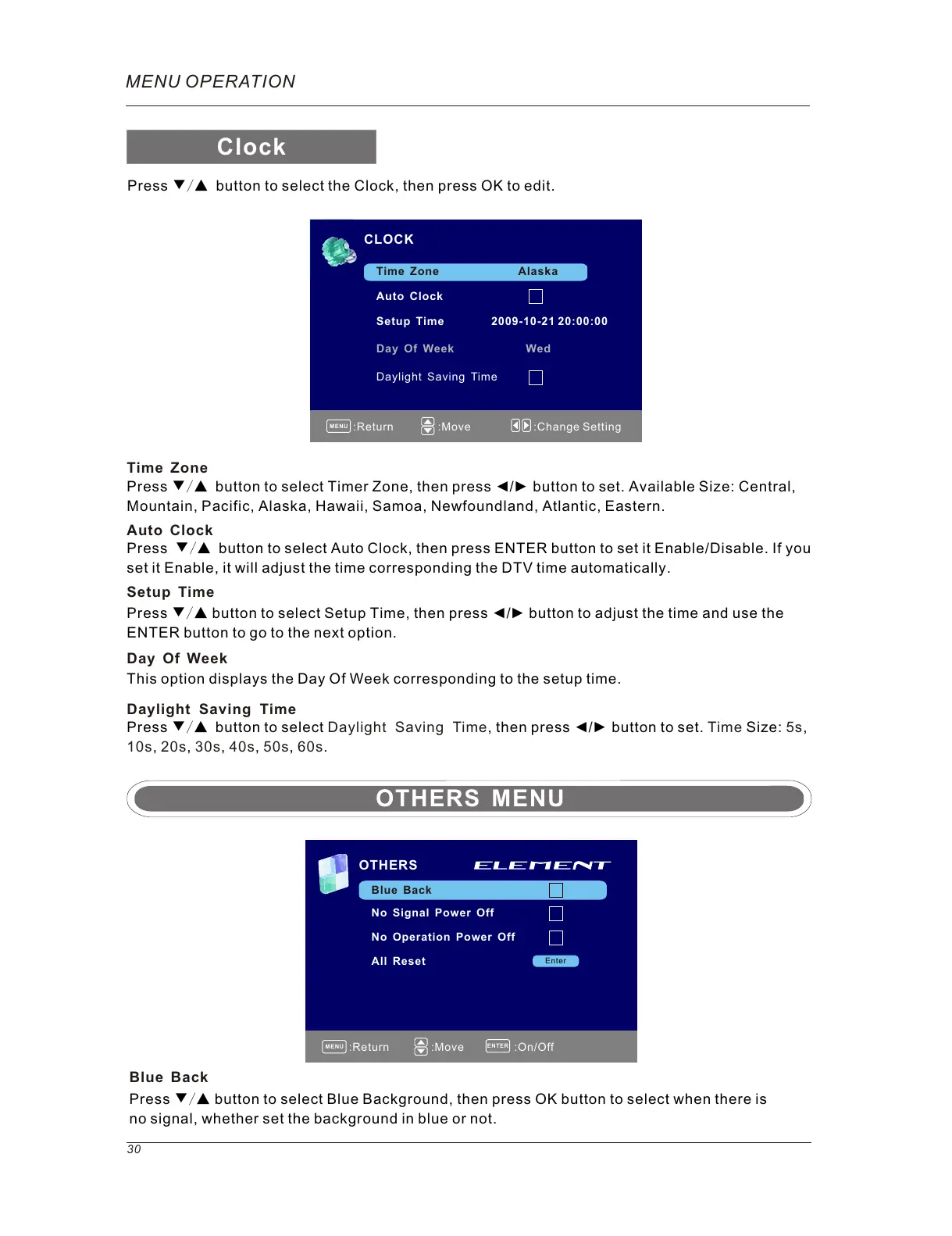 Press ▼/▲ button to select the Clock, then press OK to edit.