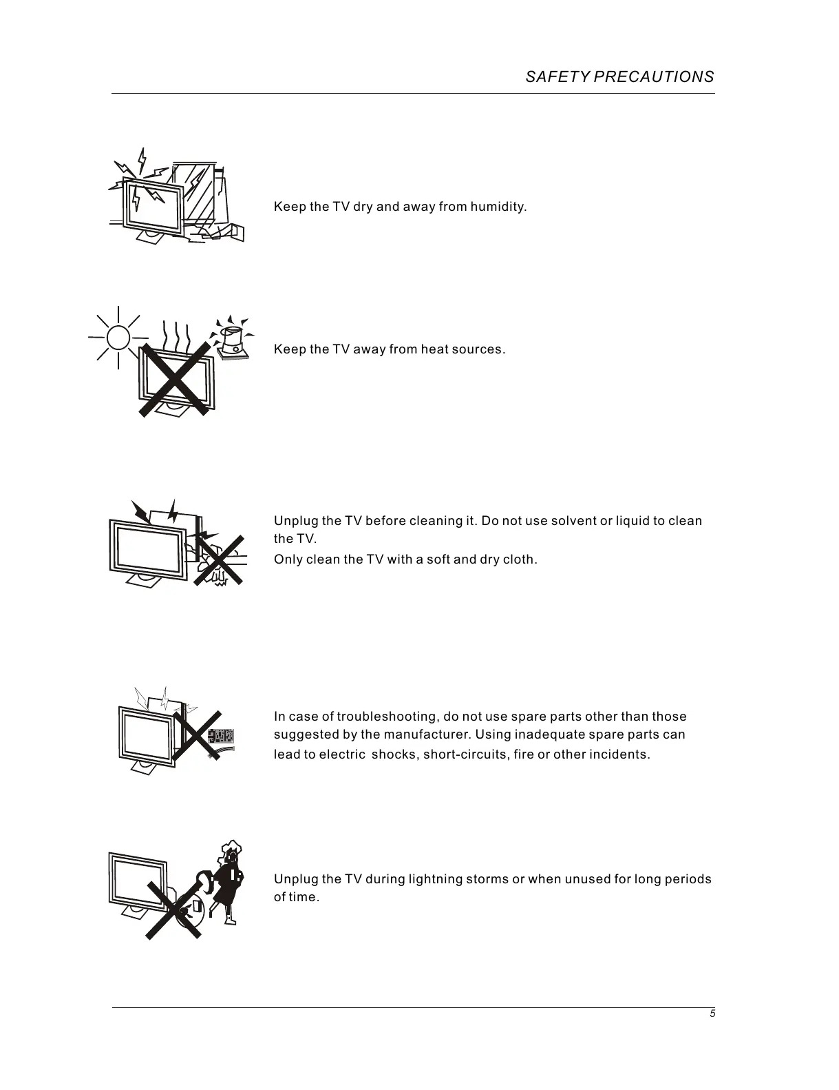 Unplug the TV before cleaning it. Do not use solvent or liquid to clean