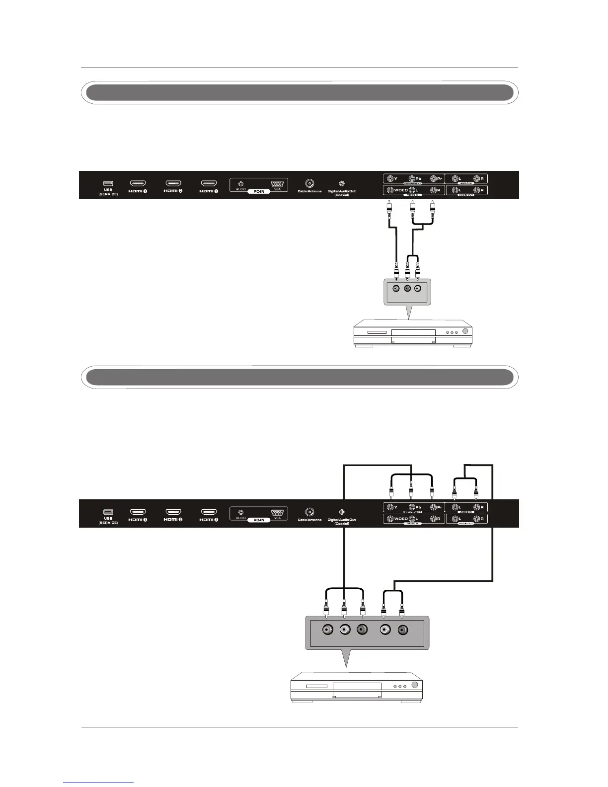 Connect the YPbPr output of the DVD or VCR to the YPbPr input on the set. The picture quality is
