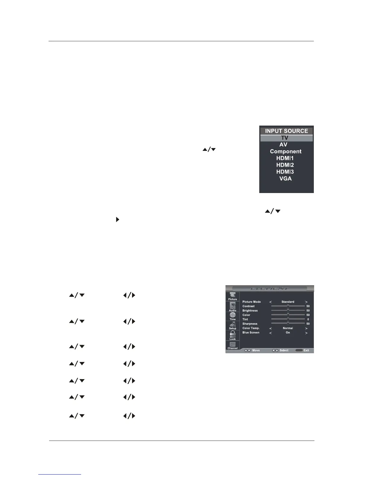 NOTE: Adjust the parameters of the picture, the Picture Mode is automatically converted to User