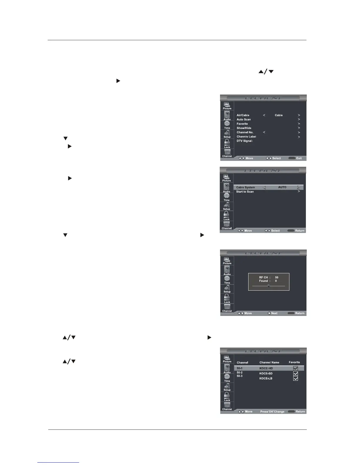 Use button to highlight the “Favorite”item, then press button to enter into the following
