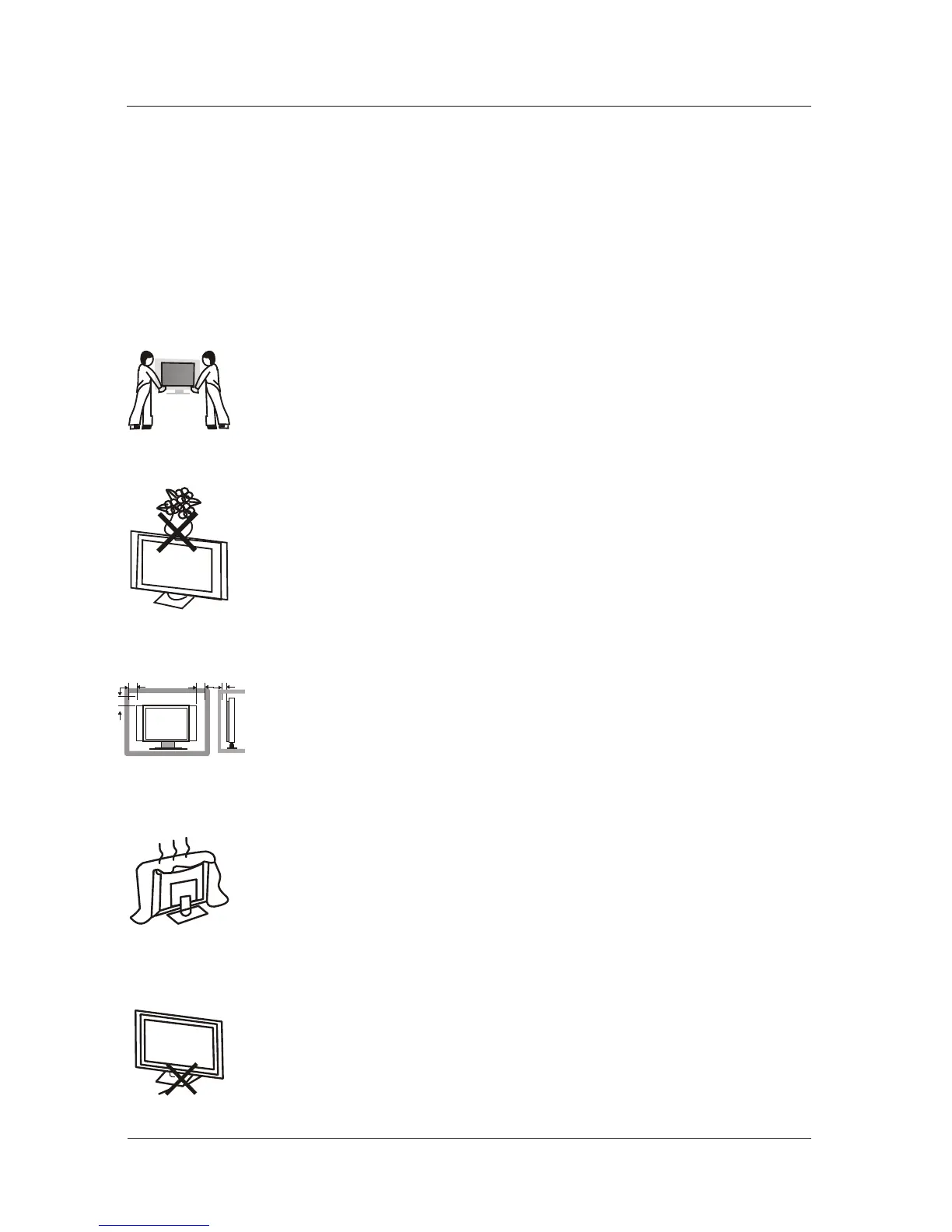 Do not place any material on the TV.