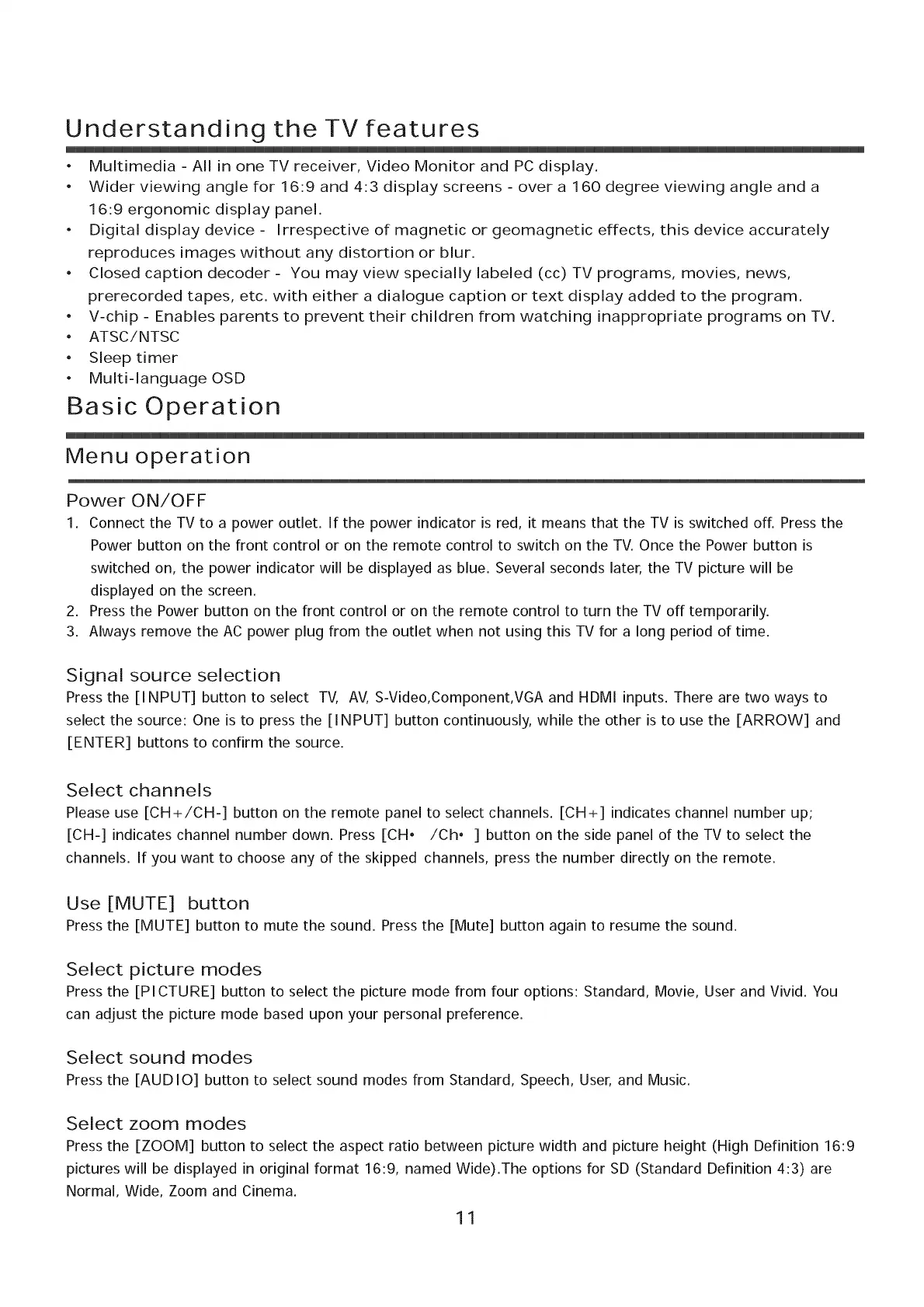 • Multimedia - All in one TV receiver, Video Monitor and PC display.
