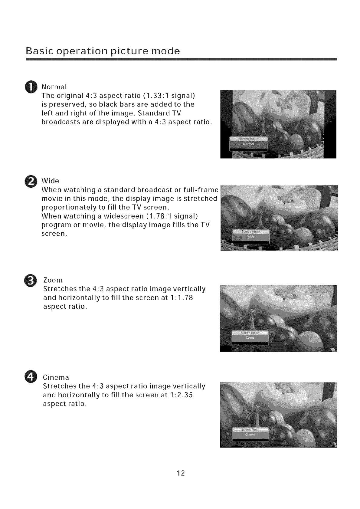 Basic operation picture mode