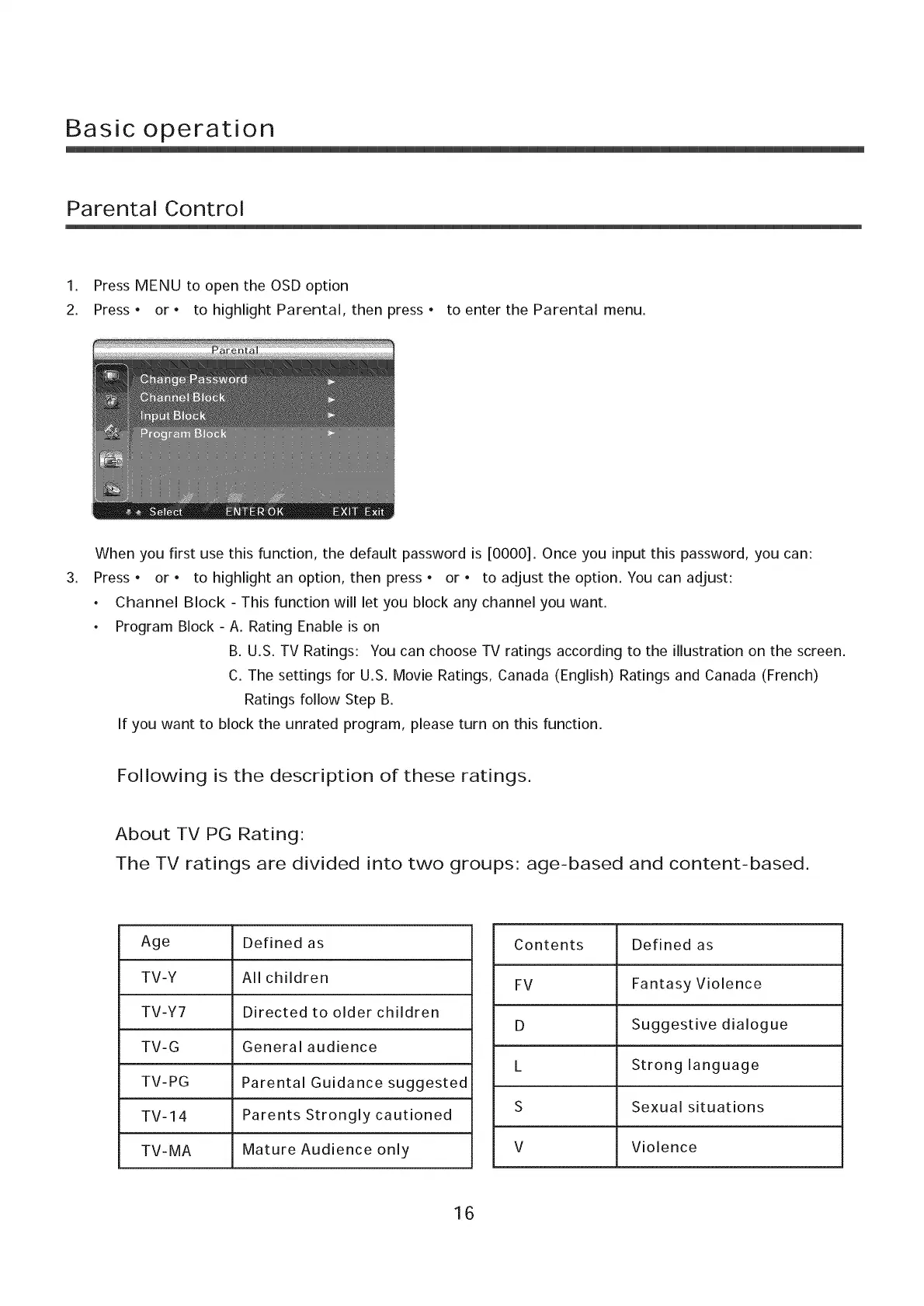 B. U.S. TV Ratings: You can choose TV ratings according to the illustration on the screen.