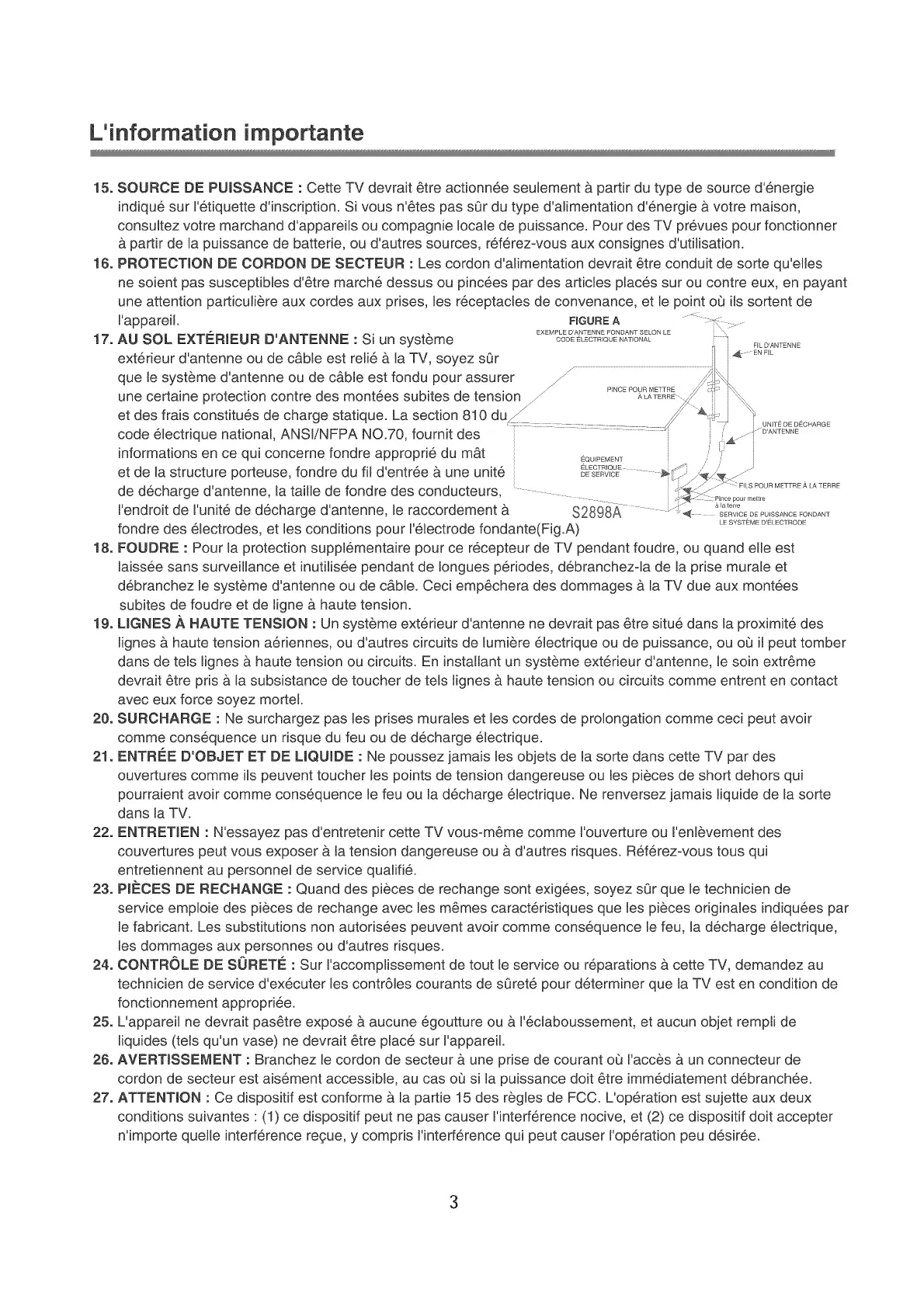 18. FOUDRE : Pour la protection supplementaire pour ce r6cepteur de TV pendant foudre, ou quand elle est