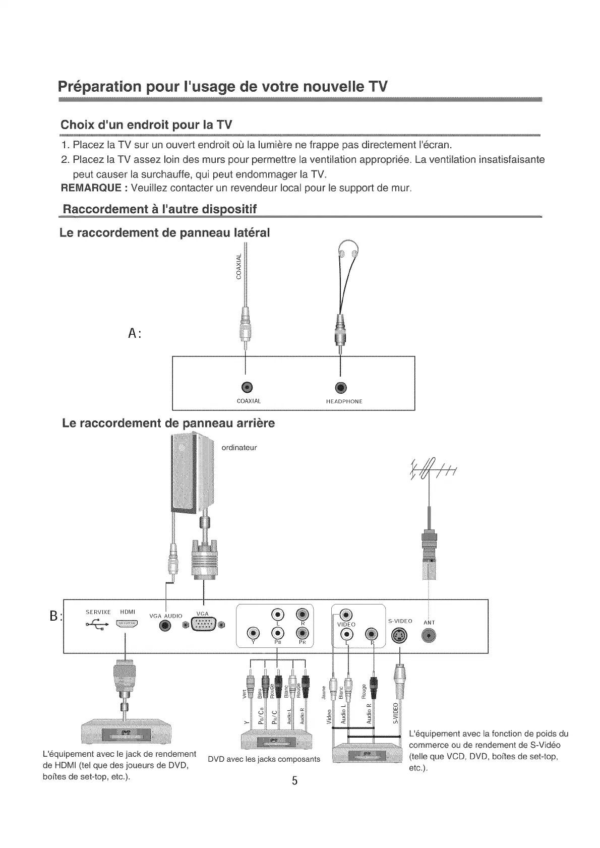 1. Placez la TV sur un ouvert endroit o2 la lumiere ne frappe pas directement I'ecran.