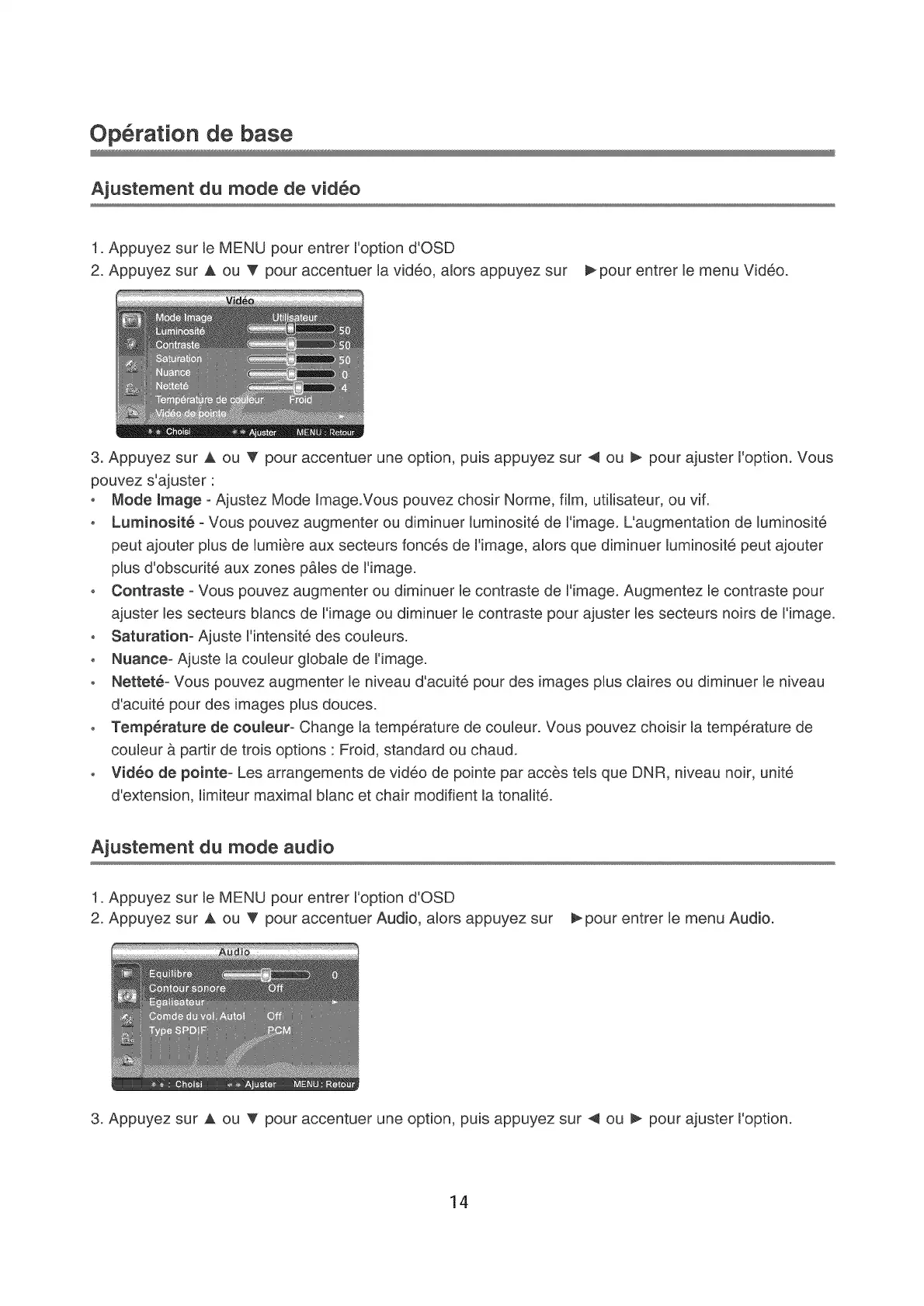 1. Appuyez sur le MENU pour entrer I'option d'OSD