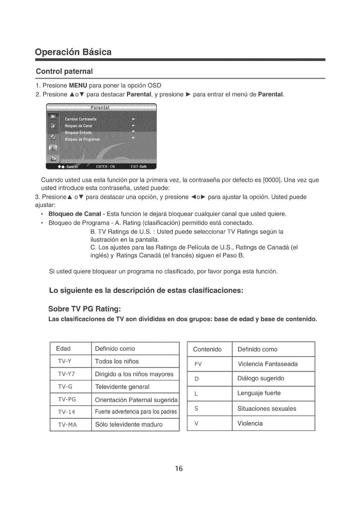 B. TV Ratings de U.S. : Usted puede seleccionar TV Ratings segOn la