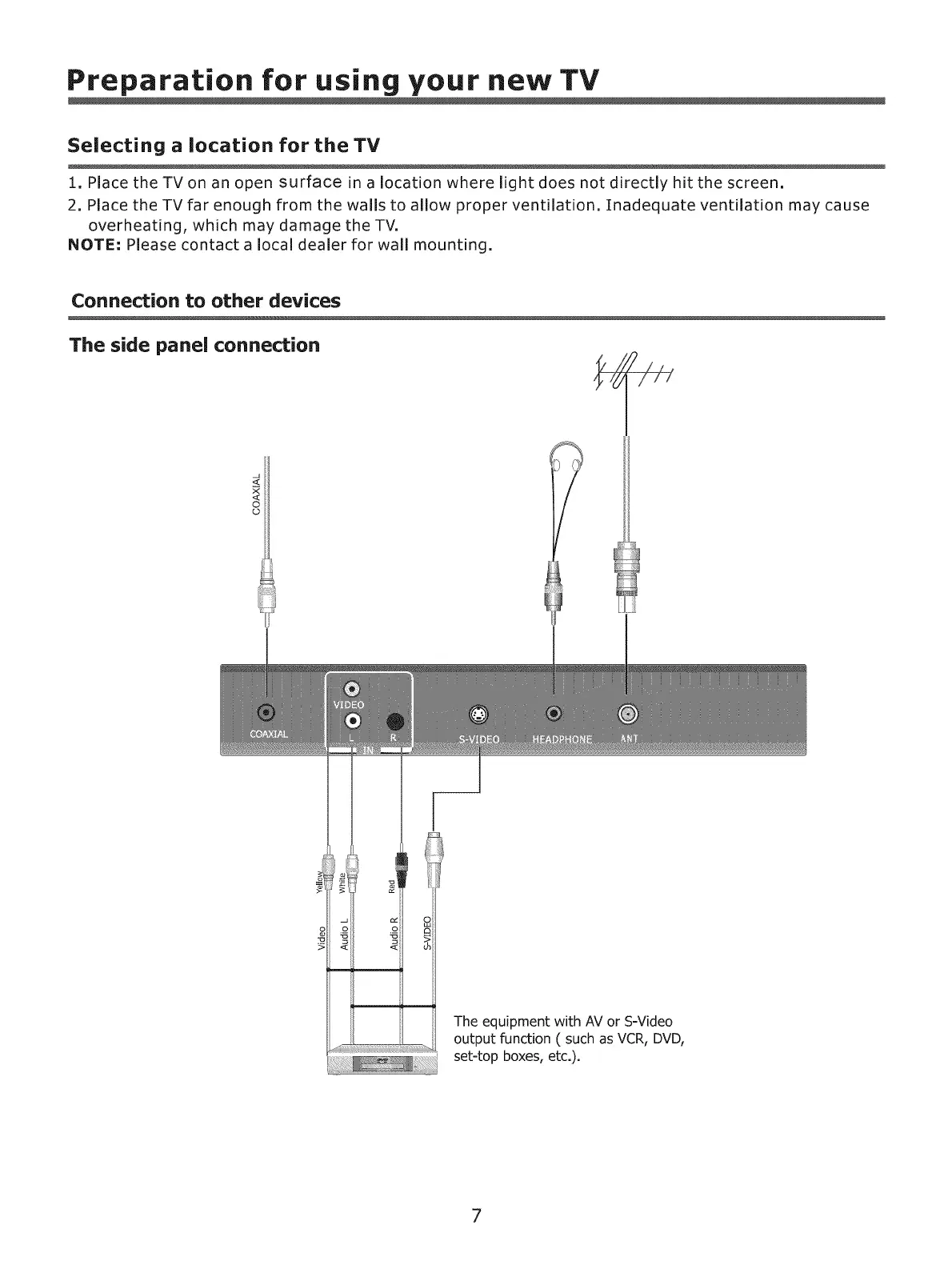 1. Place the TV on an open surface in a location where light does not directly hit the screen.