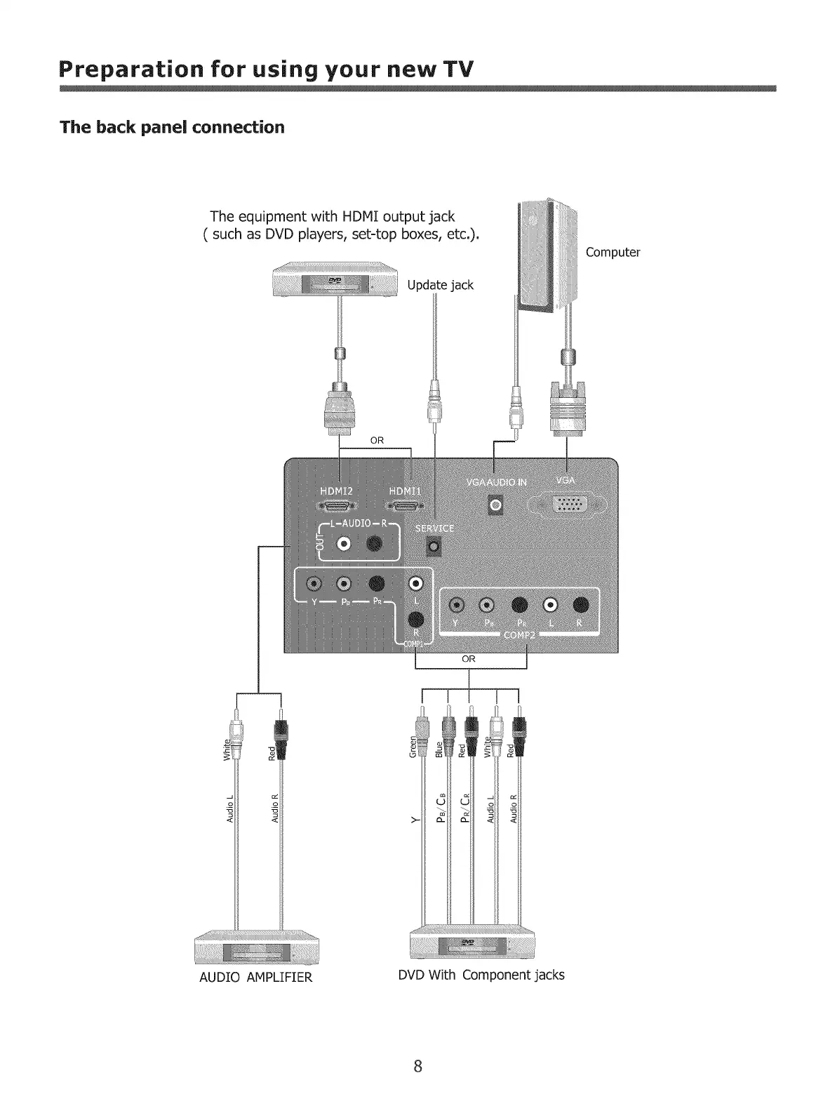 Preparation for using your new TV
