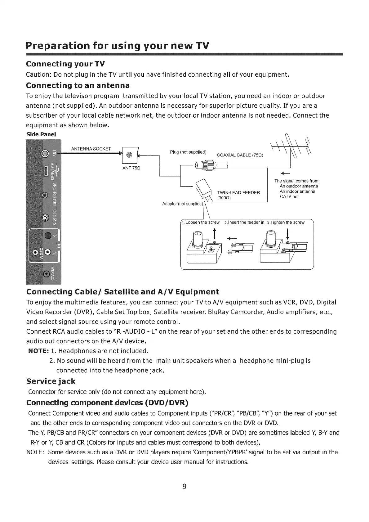 Caution" Do not plug in the TV until you have finished connecting all of your equipment,