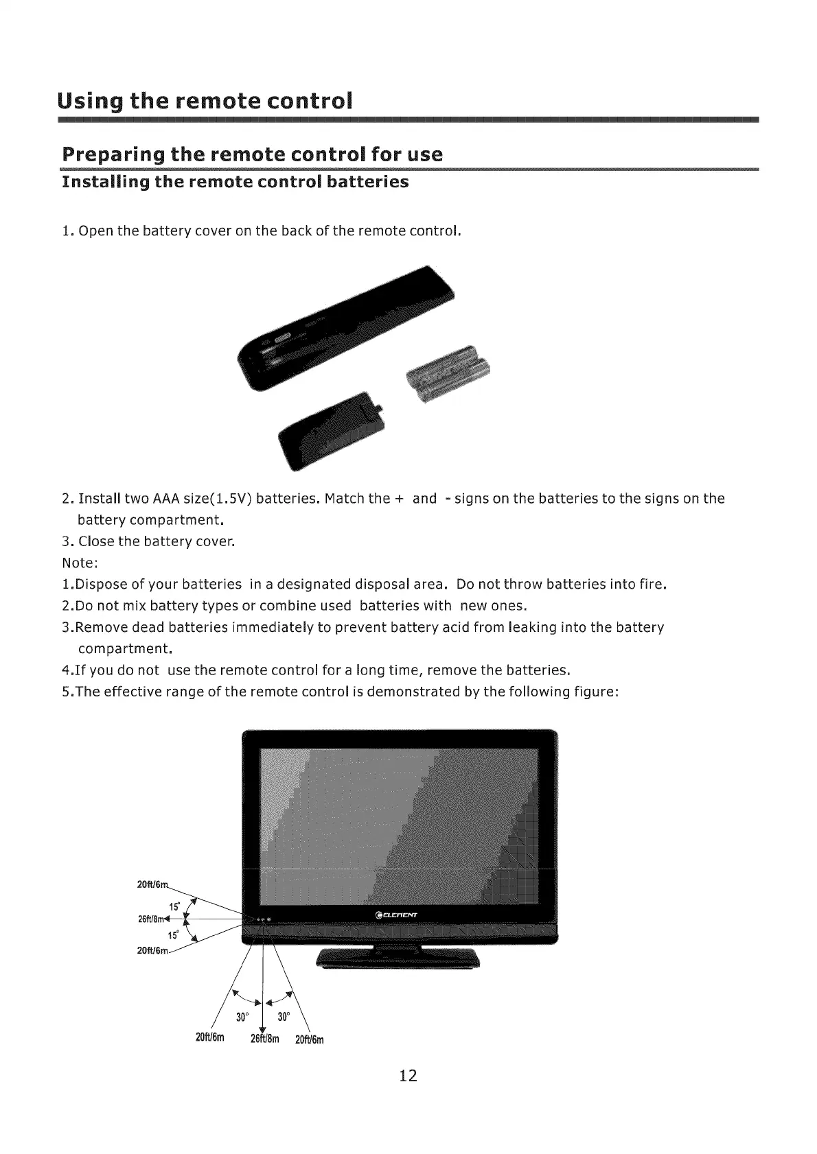 4.:If you do not use the remote control for a long time, remove the batteries.