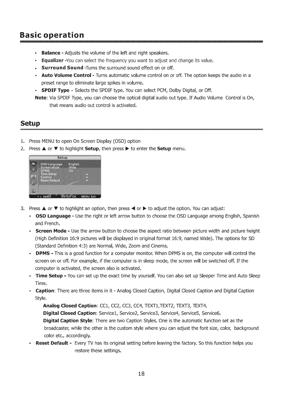 Analog Closed Caption: CC!, CC2, CC3, CC4, TEXT1,TEXT2, TEXT3, TEXT4.