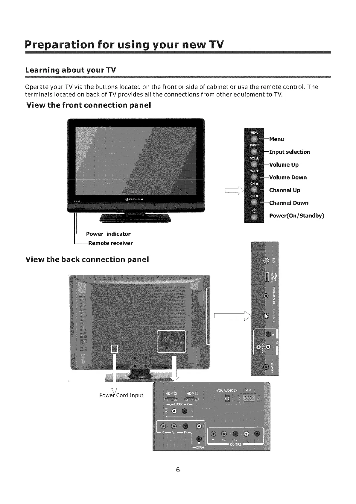 Element ELCHW261 - Learning about Your -IV; View the Front Connection Panel; View the Back Connectionpanel