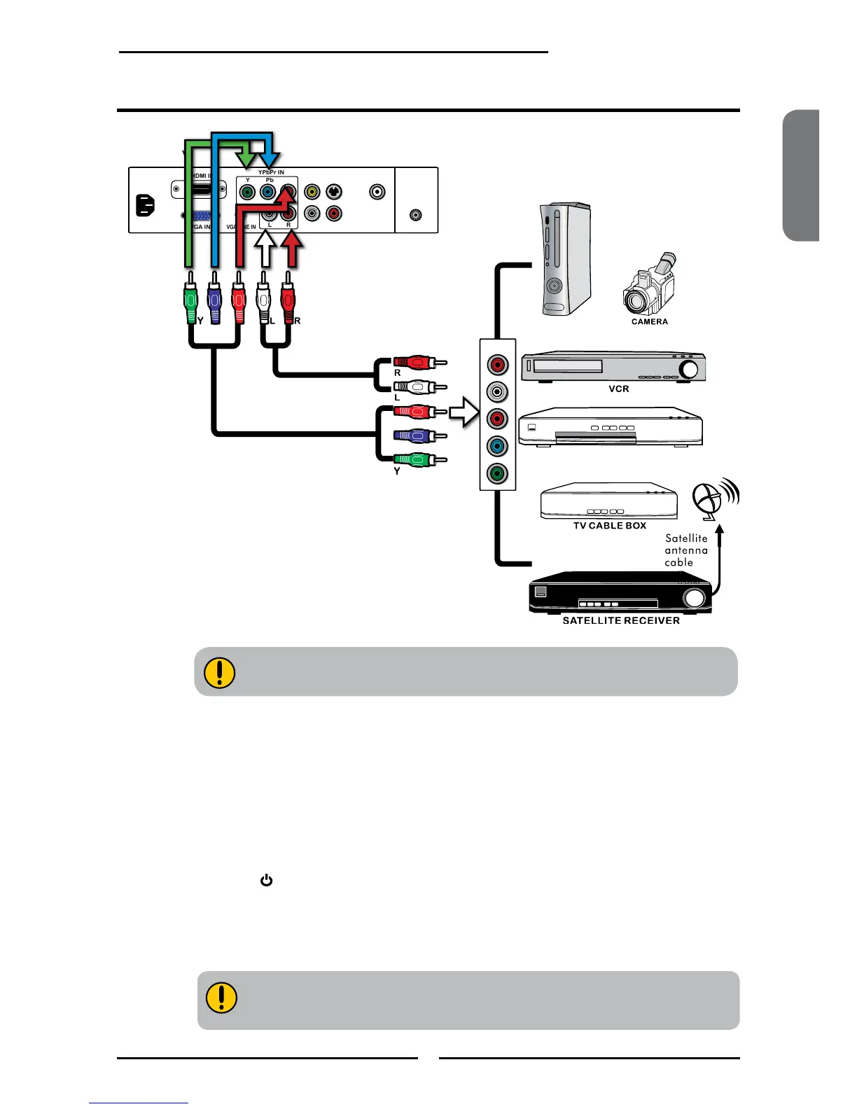 Connect all AC power sources, before turning on the power switch of the LCD TV or