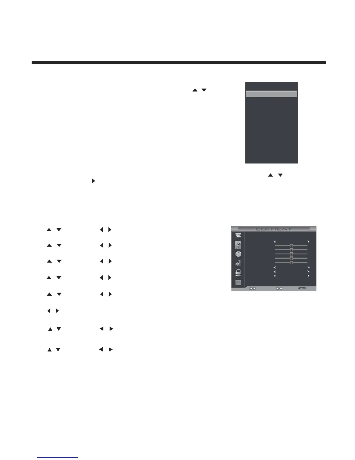 Press the MENU at the side of the panel or MENU on the remote control and then use to move the