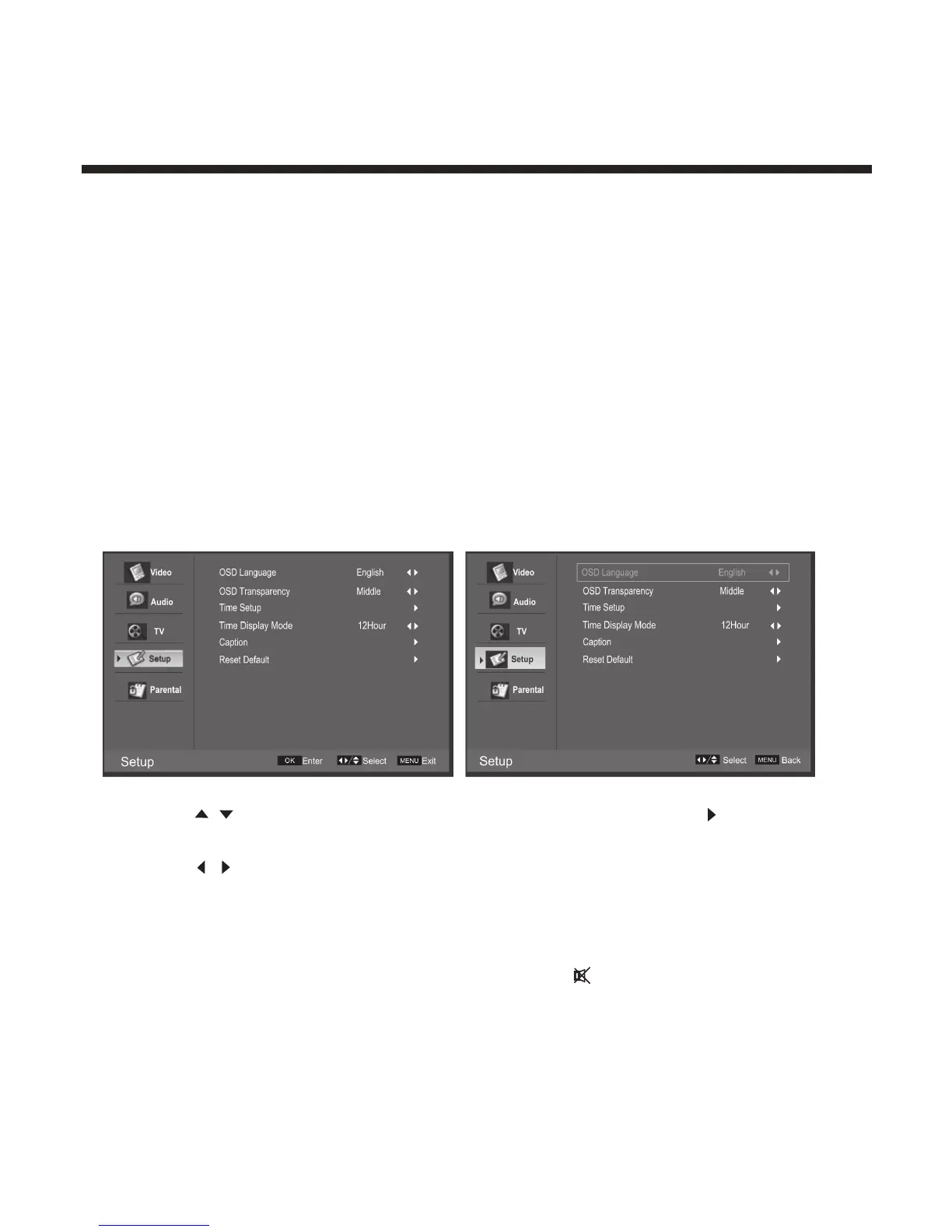 / repeatedly to select the SETUP (left picture), press OK or button to enter