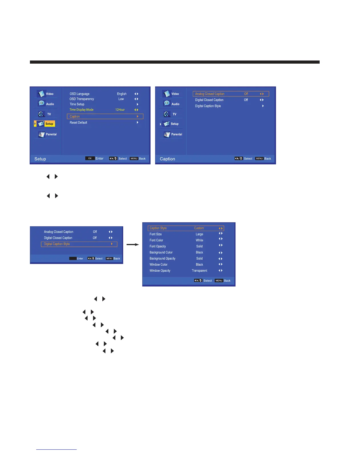 This item allows you to set the closed caption, press OK to enter Digital Caption style menu: