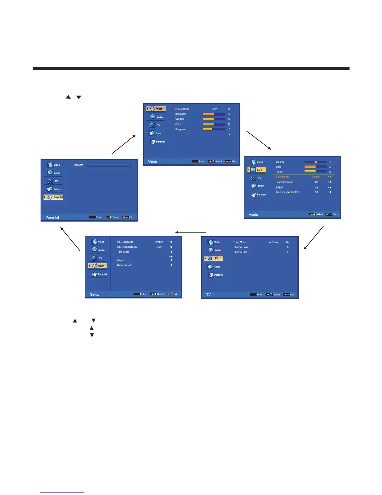 / buttons to navigate and select the available menus.