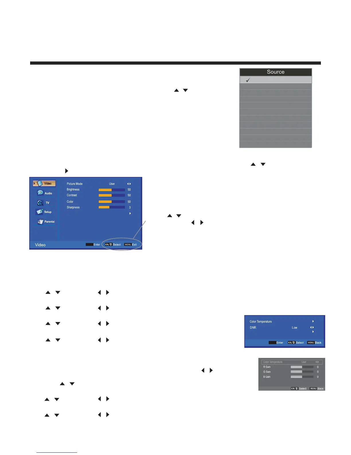 Then press / to select “R Gain, G Gain, B Gain” in “User” mode.