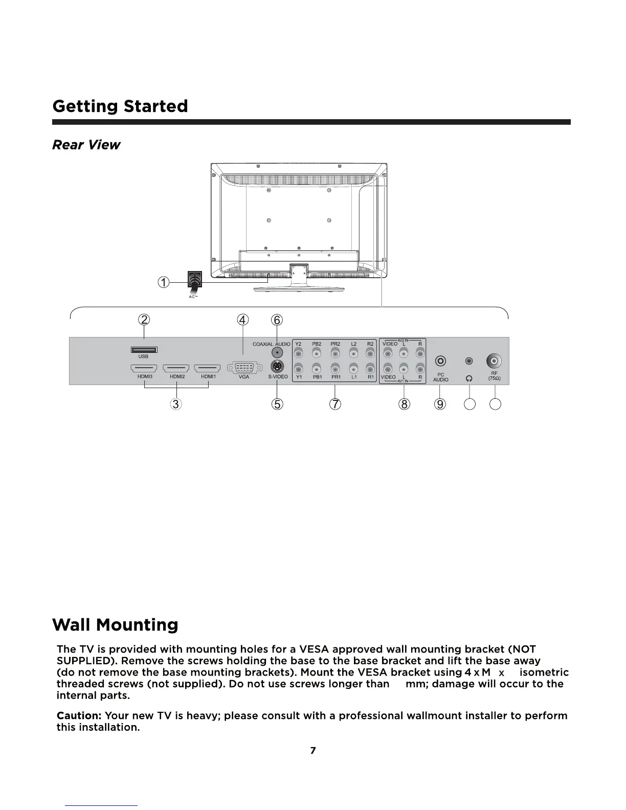 Element ELDFT551 - TV Terminal Connections; Wall Mounting