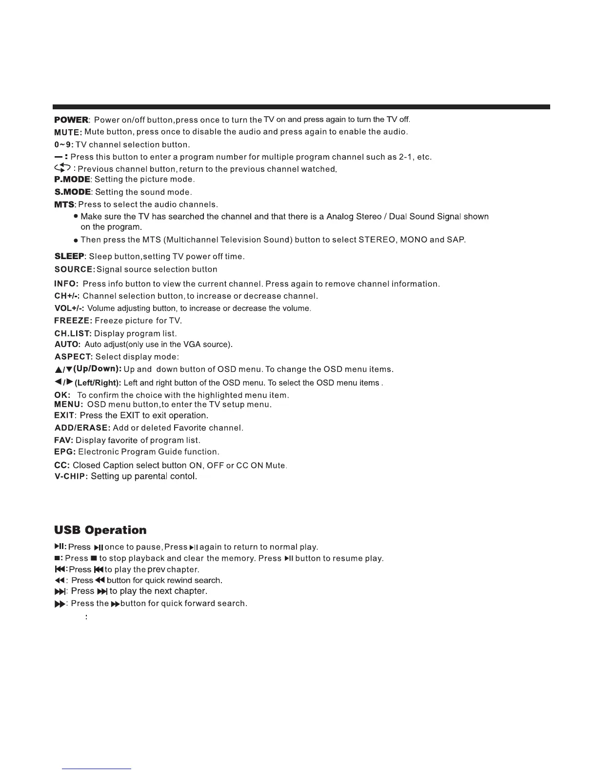 Remote Control Key Functions