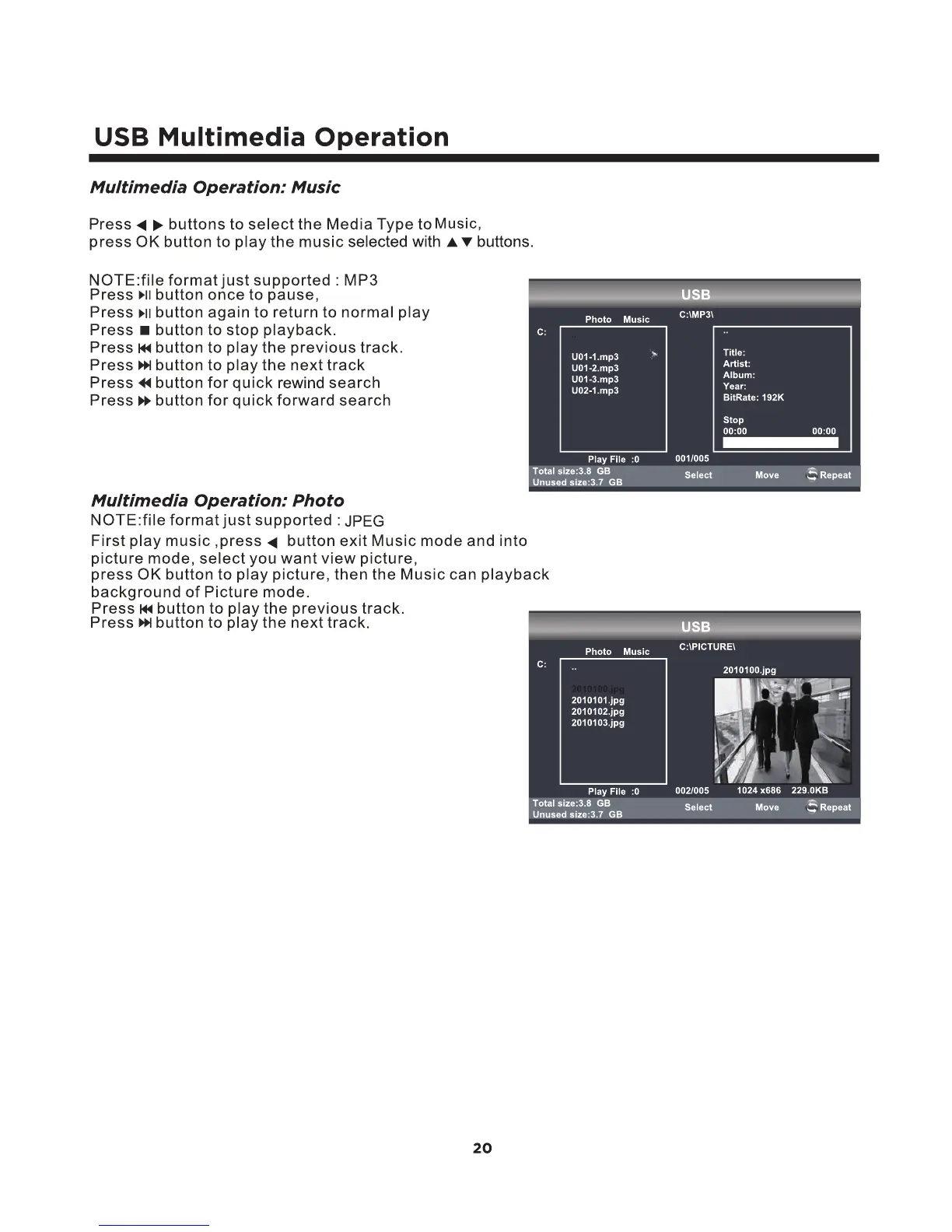 Element ELDFW407 - USB Multimedia Operation; Music Playback; Photo Viewing