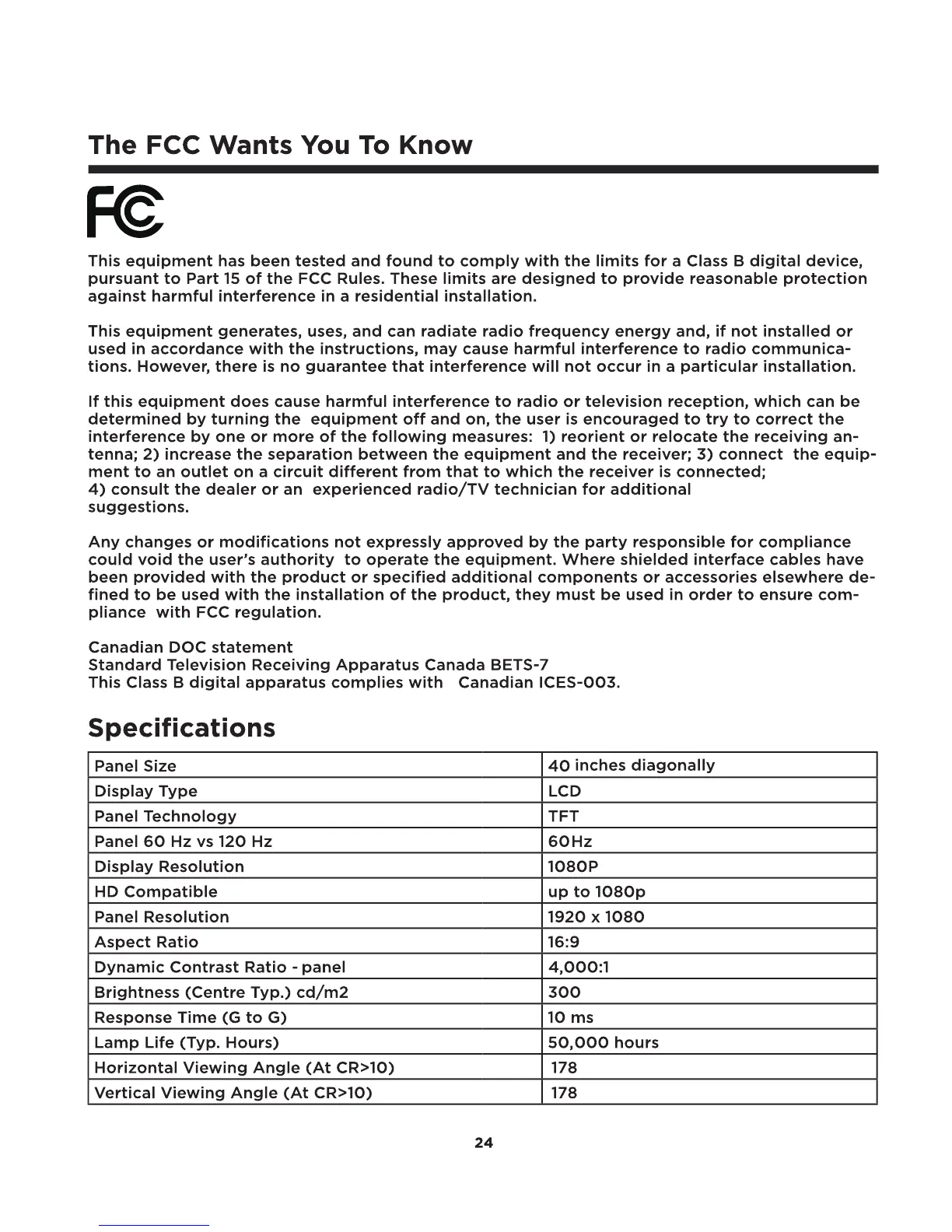 Element ELDFW407 - FCC Compliance; Product Specifications