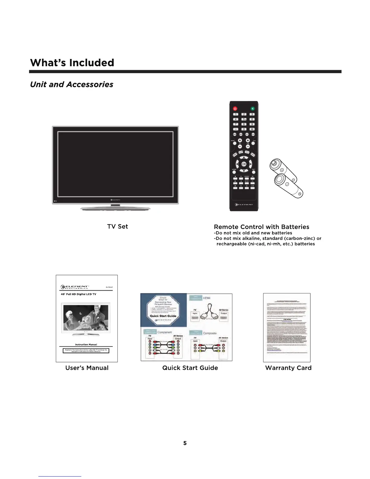 Element ELDFW407 - Whats Included; Unit and Accessories List