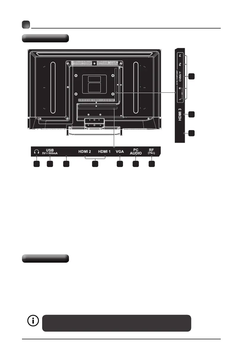 The TV is provided with mounting holes for a VESA approved wall mounting bracket (Not