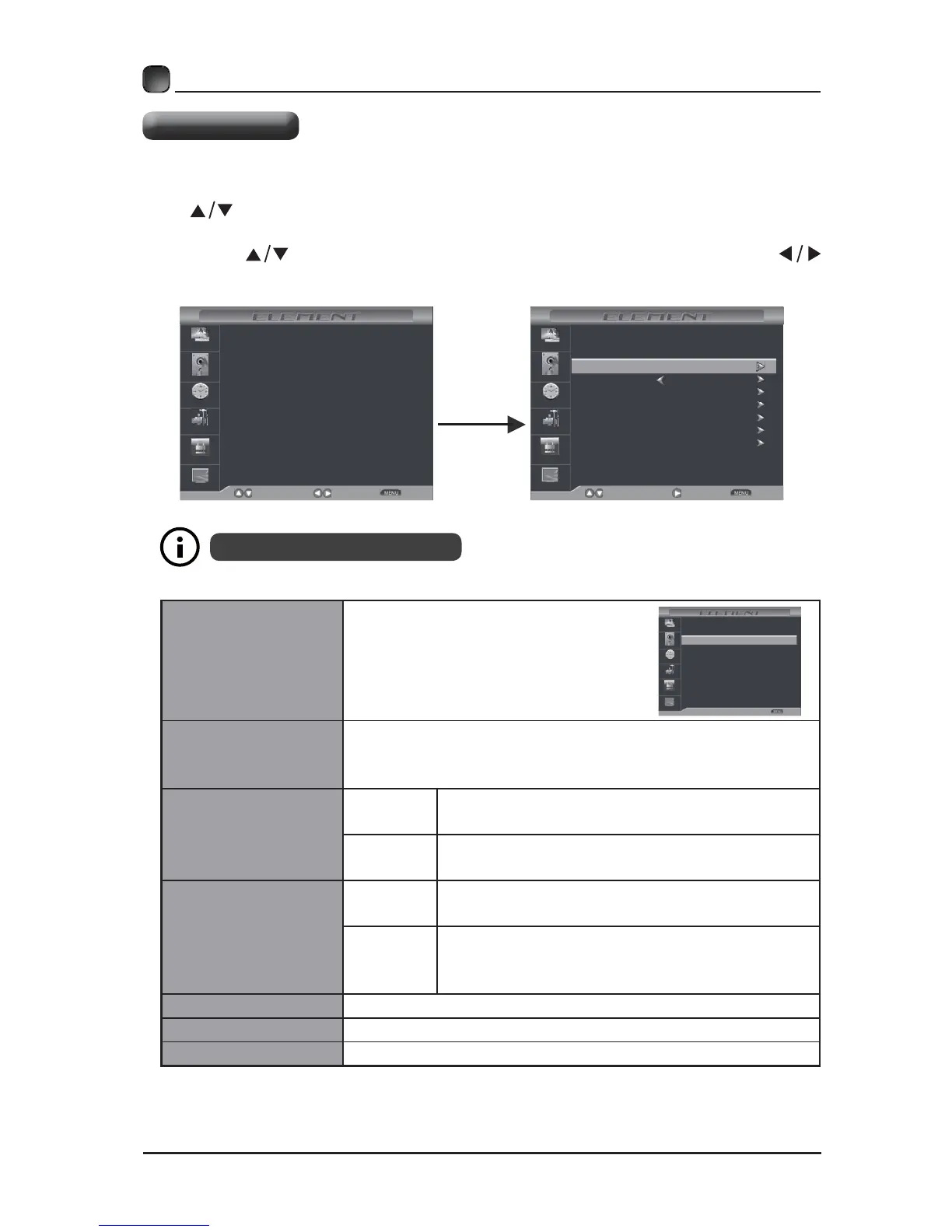 buttons to adjust each option’s setting.