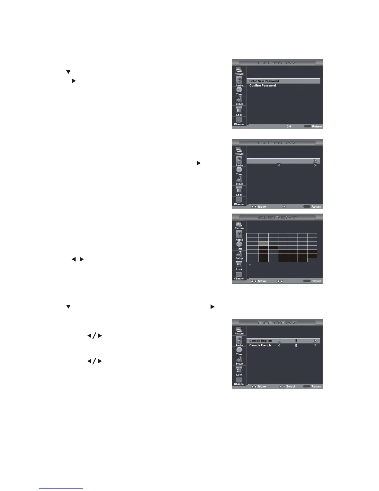 Use button to highlight the “Canada” item, then press button to enter into the