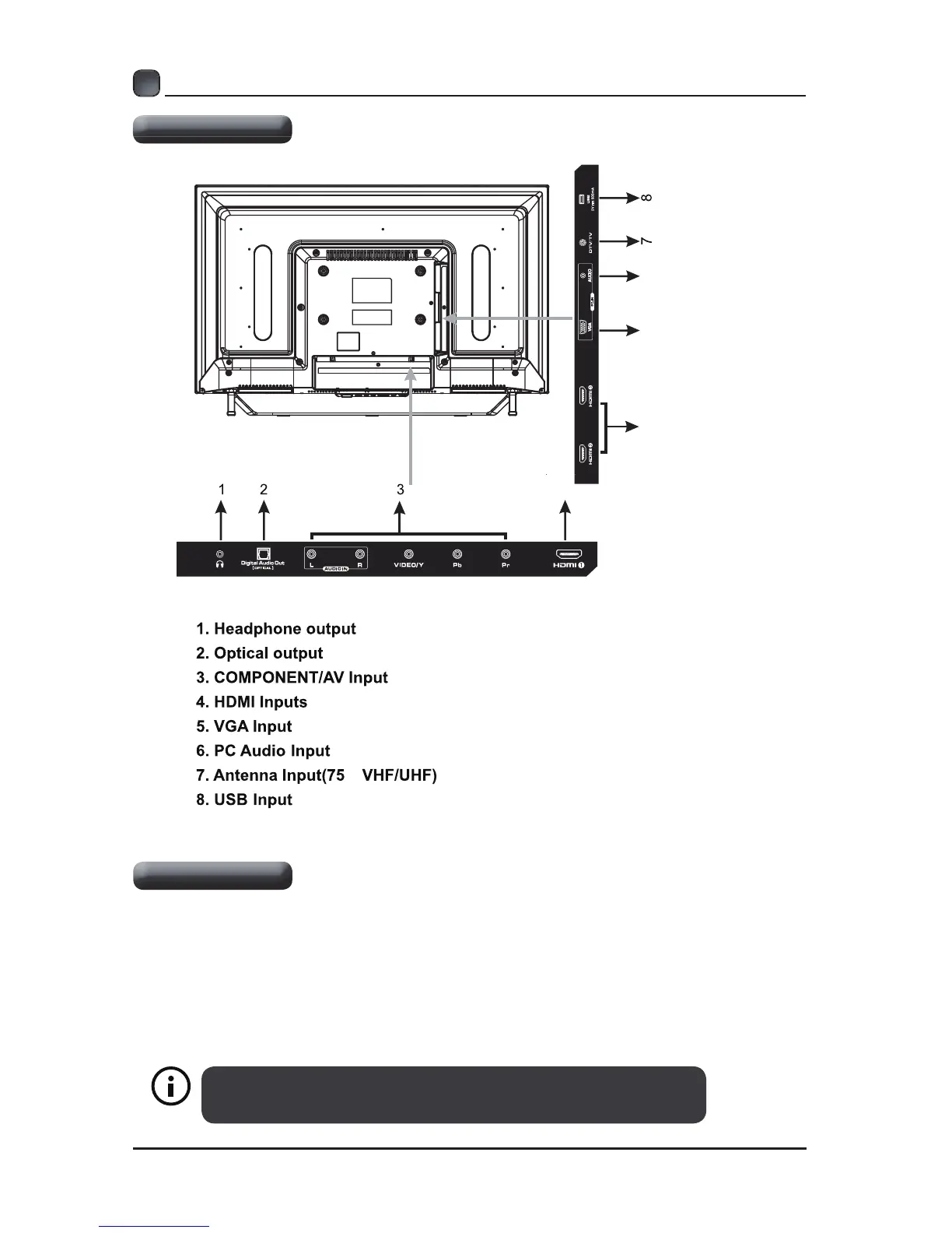 The TV is provided with mounting holes for a VESA approved wall mounting bracket (Not